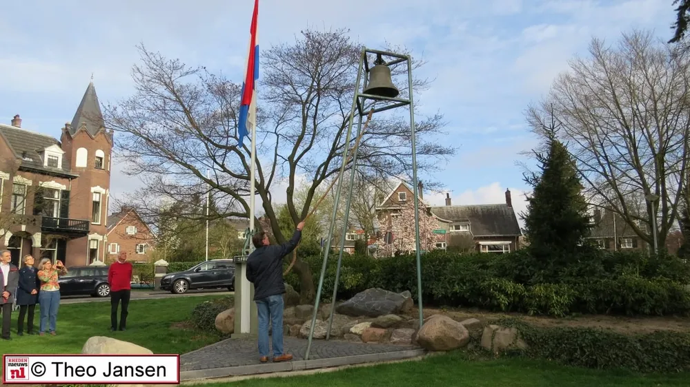 VELP – Ter nagedachtenis aan het einde van de oorlog en de bevrijding van Velp werden afgelopen donderdagochtend de klokken geluid bij het herdenkingsmonument aan de vijverlaan in het Villapark te Velp.