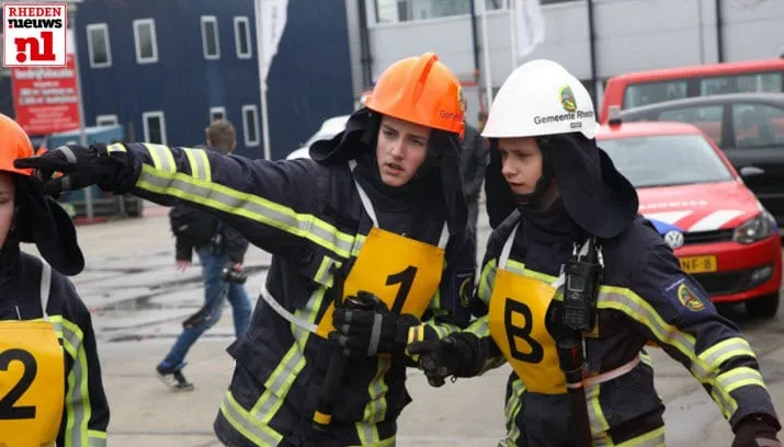 RHEDEN/NIJKERK - Junioren en aspiranten van de Rhedense Jeugdbrandweer streden afgelopen zaterdag in Nijkerk tijdens de Jeugdwedstrijden Gelderland Midden.