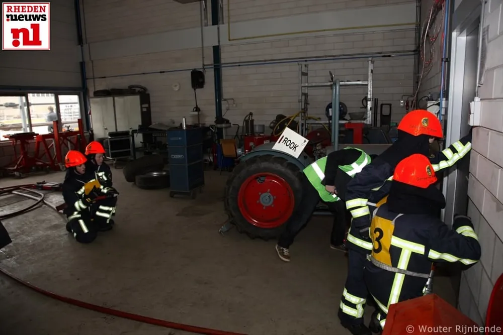 In het scenario voor de junioren vatte een traktor vlam in de werkplaats van een bronbemalingsbedrijf op de Nijverheidsstraat.De brand was overgeslagen op een andere hal alwaar ook een slachtoffer gered moest worden.De aspiranten kregen te maken met een échte brand in een auto elders in een werkplaats in het pand.