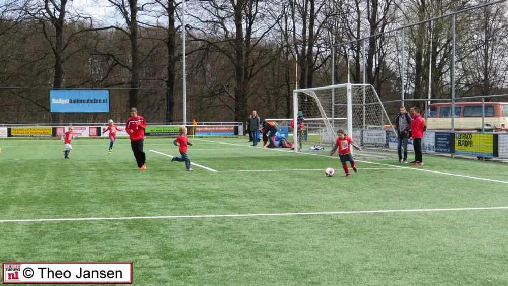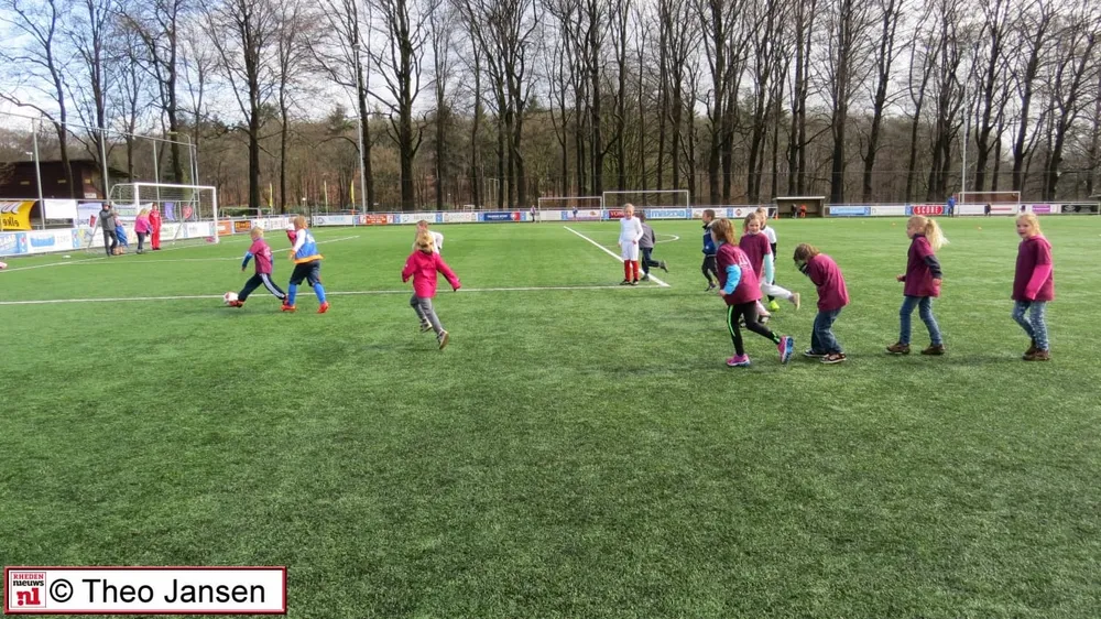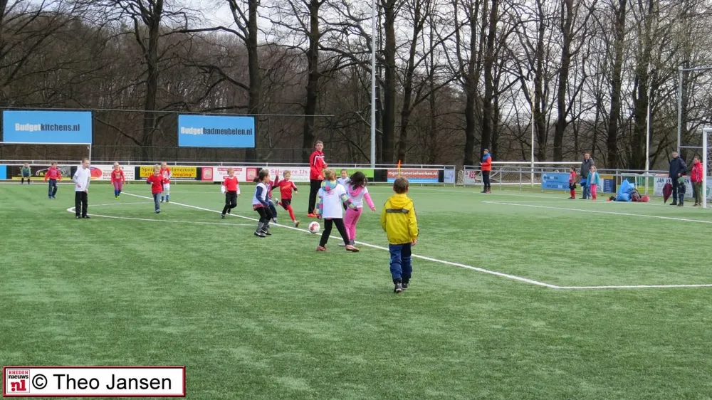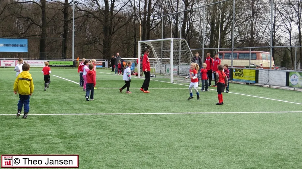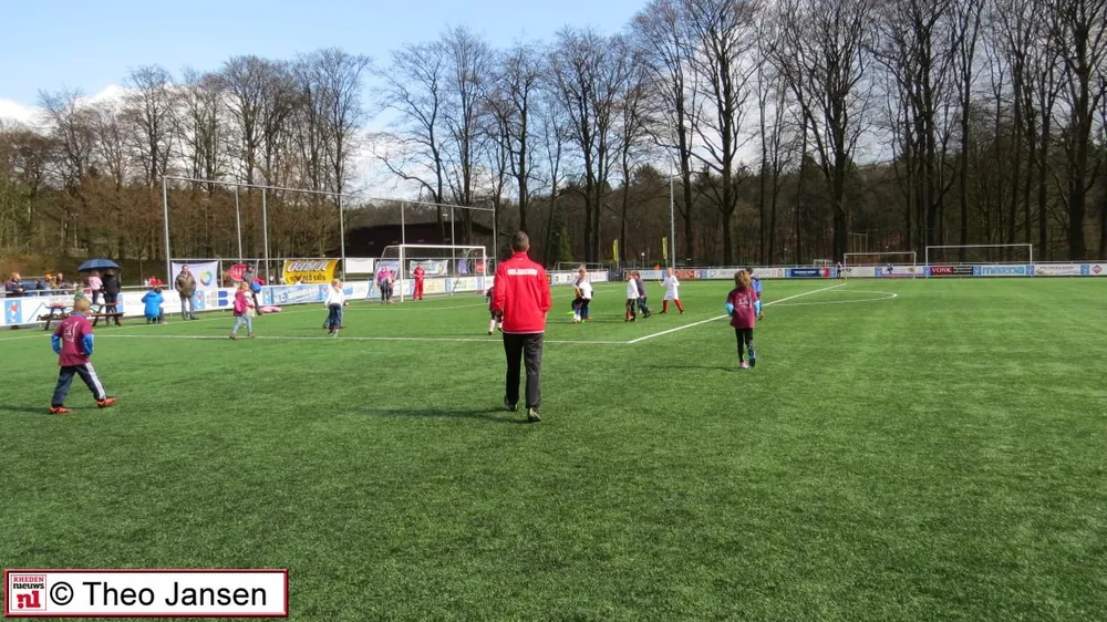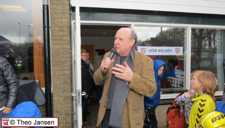 Na een welkomstwoord aan alle ouders maar vooral aan alle kinderen uit groep 3, 4 en 5 opende de wethouder de eerste voetbal middag op 1 april in het sportpark De Pinkenberg.
