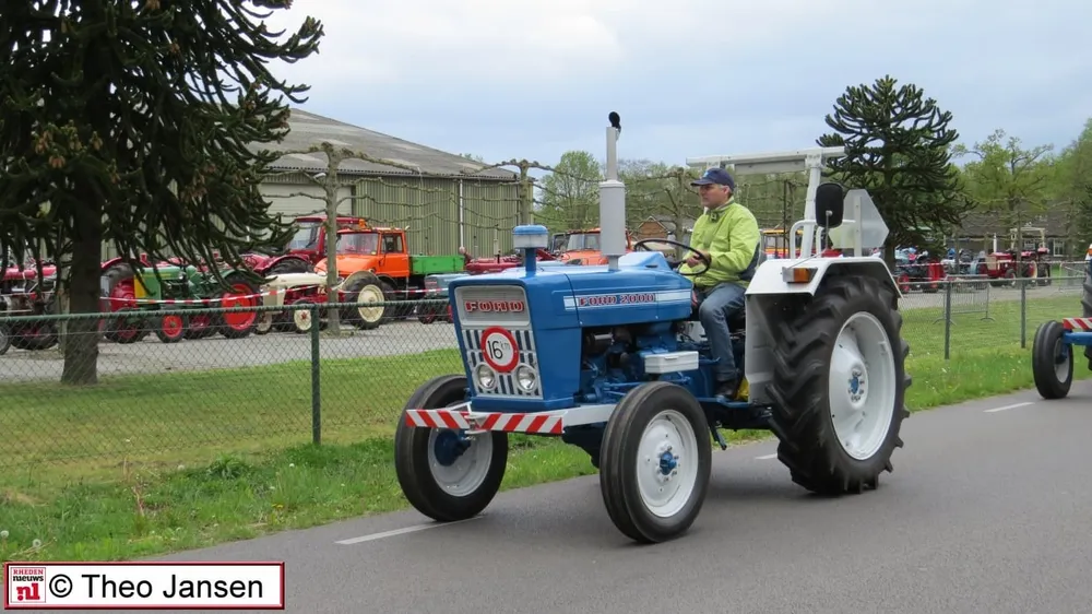 Er hadden zich 120 tractoren opgegeven voor de rit, maar door het mooie weer hadden zich spontaan nog eens 10 extra tractoren aangemeld bij de start.