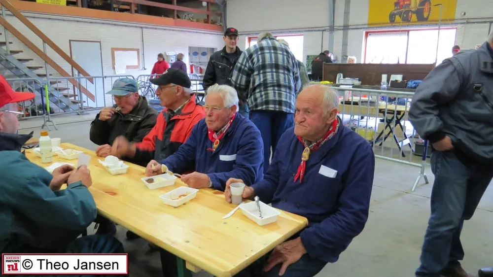 Deze was prima verzorgd, men kon via een lopend buffet broodjes, beleg, snacks en iets te drinken pakken. In deze eet- en rustpauze van een uur was er gelegenheid alle tractoren te bewonderen door het publiek of mederijders, er waren zeer mooie en bijzondere exemplaren bij.