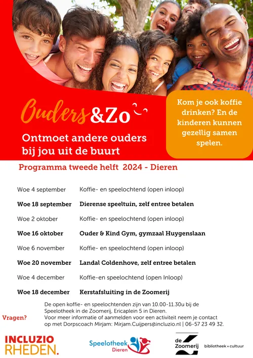 DIEREN - Ouders & zo is een laagdrempelige manier voor ouders om met elkaar in contact te komen en waarbij de kinderen samen kunnen spelen. De 1e woensdag van de maand is een open inloop, de 3e woensdag van de maand is vaak een activiteit.