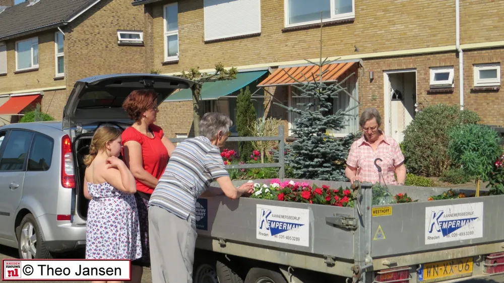RHEDEN - Ook het 15 jarig jubileum jaar van de bloemen-actie van het Rhedens Fanfare Corps op zaterdag 7 mei, was wéér een groot succes, de verkoop liep weer als een tierelier bij het clubgebouw aan de Mauritiusstraat in Rheden.