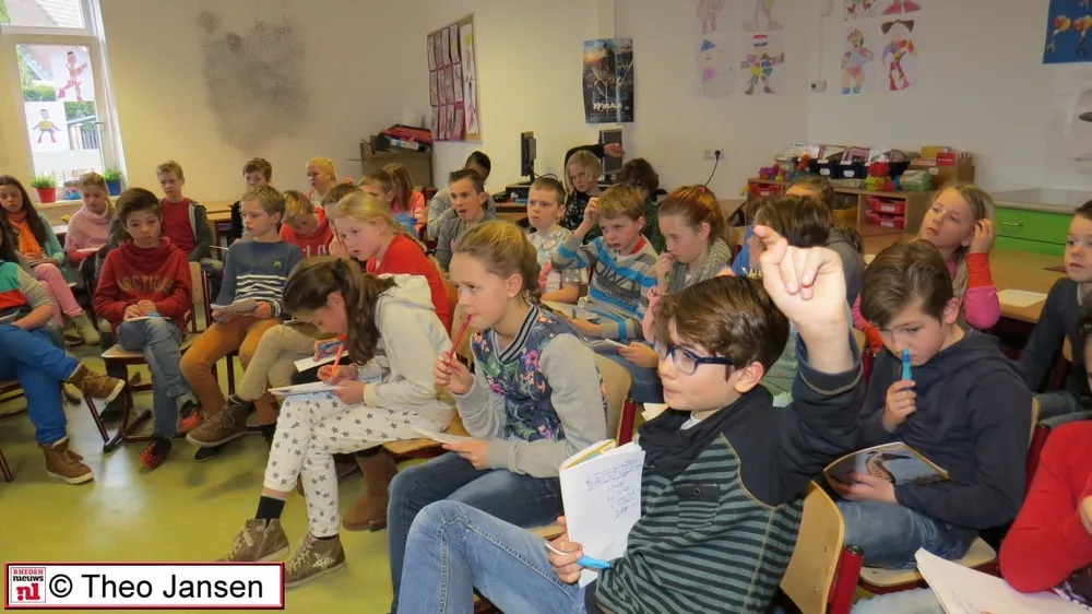 Wethouder Constans Pos met in zijn portefeuille kunst, jeugdzorg en onderwijs gaf een gastles aan de leerlingen van de groepen 6 en 7 in hun klas. Ook hier vragen zoals hierboven genoemd, maar ook: “Waar zorgt een wethouder voor in de gemeente?” De heer Pos gaf als voorbeeld: “Het ervoor zorgen dat het groenafval en het papier opgehaald wordt, wat weer goed is voor het milieu. En zorgdragen voor goed onderwijs, zodat men later een goede baan kan krijgen.”