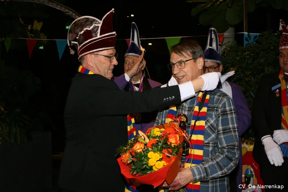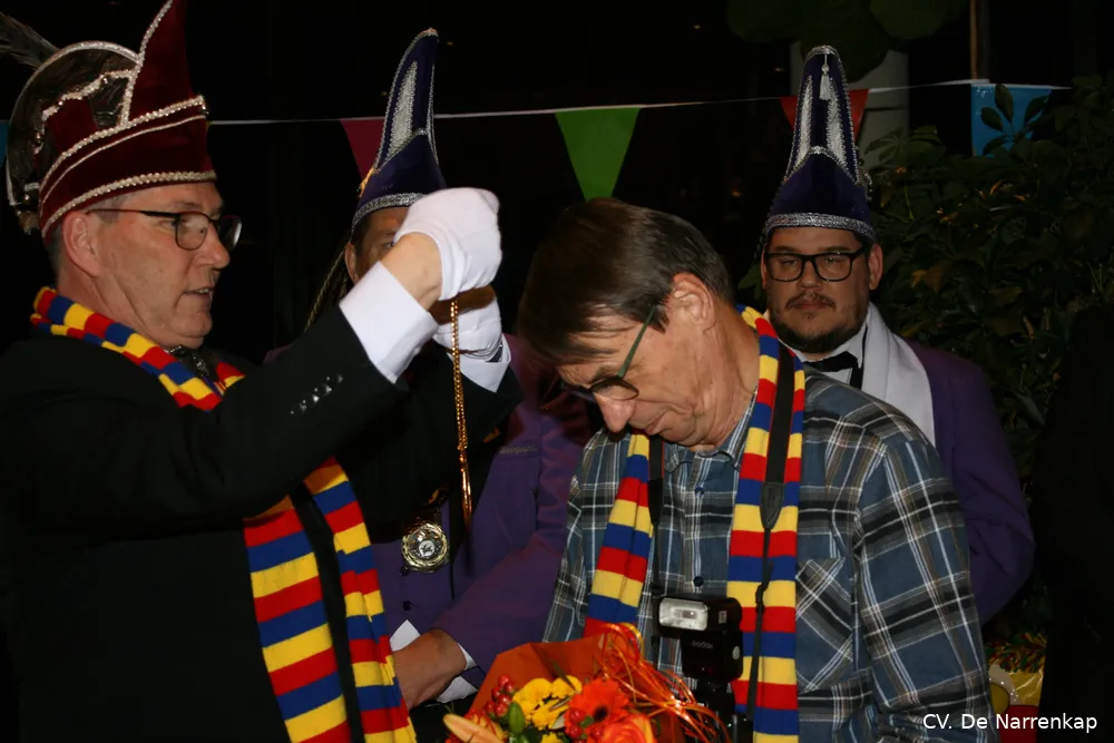Een bijzonder moment was er voor fotograaf Theo Jansen, die volgens de organisatie veel betekent voor de gemeenschap en voor zijn werk en foto’s bij Rheden Nieuws. Hij ontving de Ere medaille “Ridder In De Orde De Zeven Dorpen”, met daarbij een bloemetje.