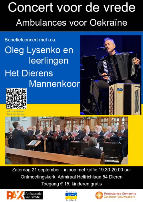 Vrede, Music For Ukraine en de Protestantse Gemeente Zuidoost-Veluwezoom. Kijk voor meer informatie op: