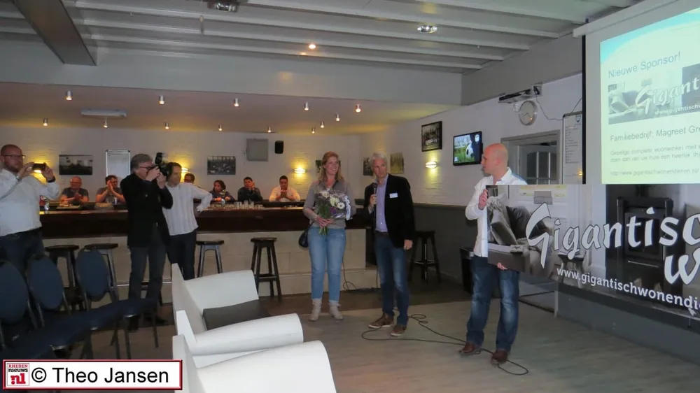 Voordat de lezing begon werden er eerst een aantal nieuwe sponsoren voorgesteld en in de bloemetjes gezet.