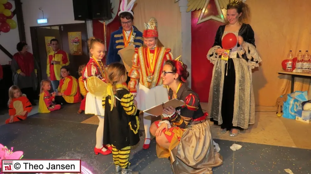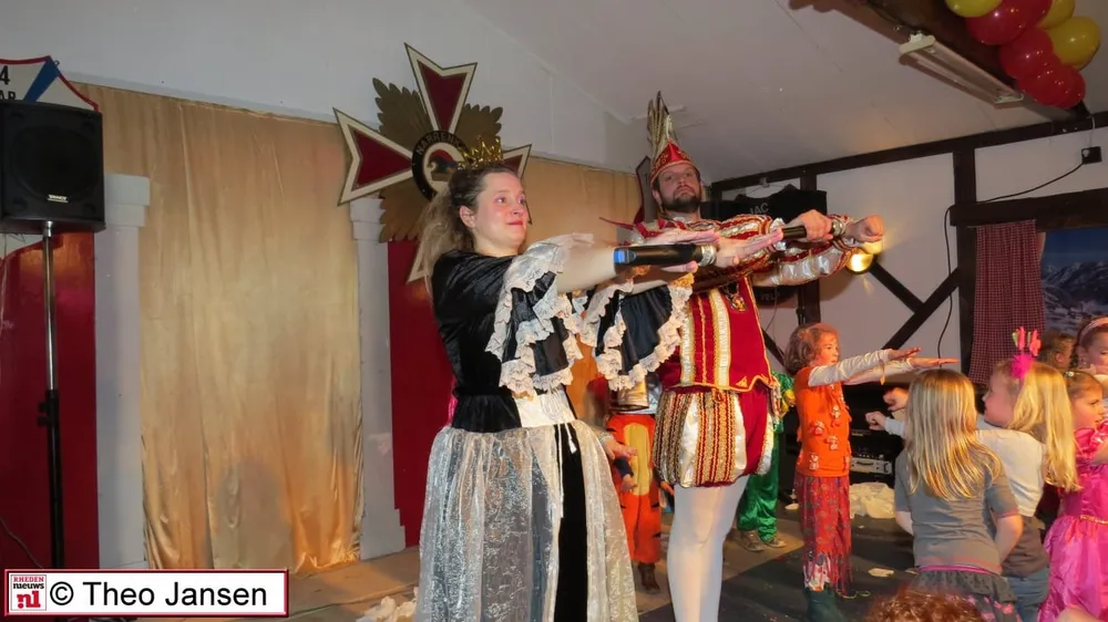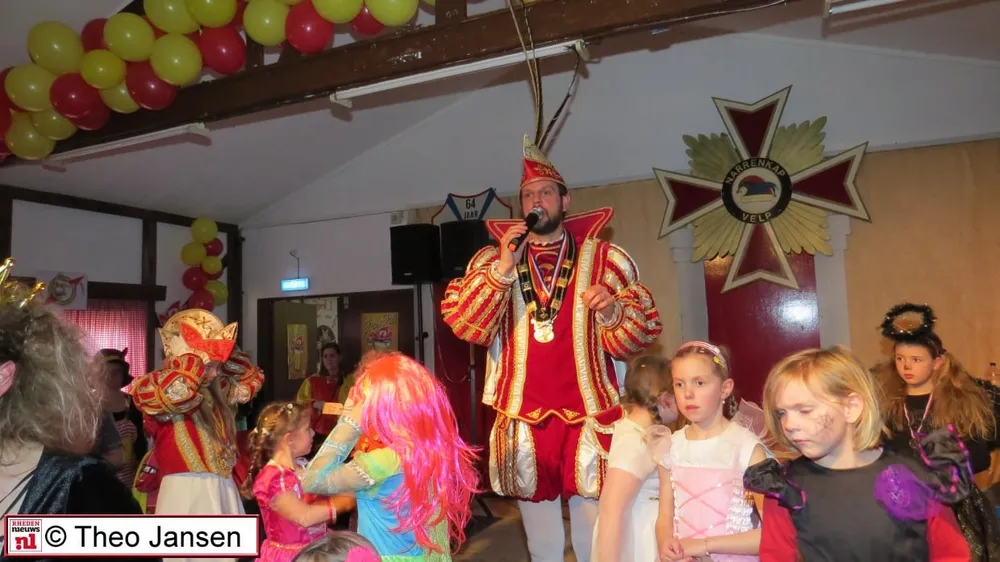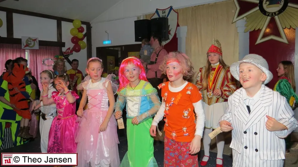 VELP - Het was zaterdagmiddag 14 februari feest op De Beemd in Velp bij de Cv. De Narrenkap. Er waren zo'n 100 kinderen met hun ouders naar het kindercarnavalsfeest gekomen. Er werd gezongen opgetreden en polonaise gelopen. De kinderen hadden zich zo apart mogelijk verkleed om zo in de prijzen te vallen, wie had zich het mooist/leukst/origineelst verkleed?