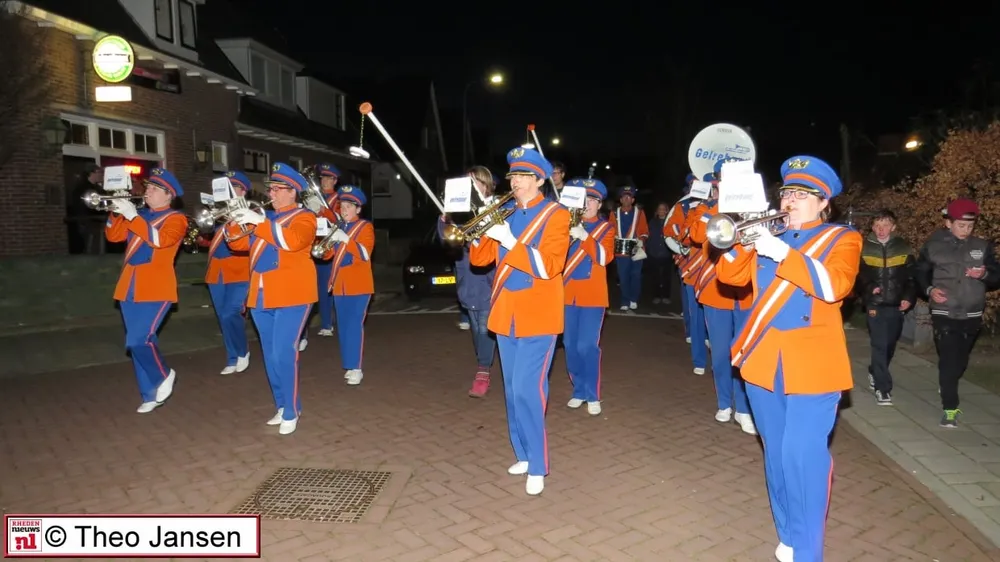 De optocht werd muzikaal begeleid door de March- en Showband Rheden de Gelreband uit Dieren en de March- en Showband Mr. v.d Zandt Vereniging uit Velp. Na afloop was er voor alle kinderen chocolademelk en een versnapering die verstrekt werden door de Oranjevereniging.