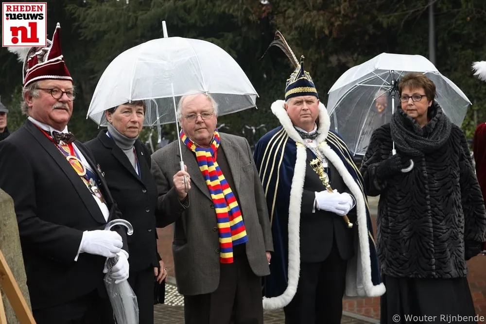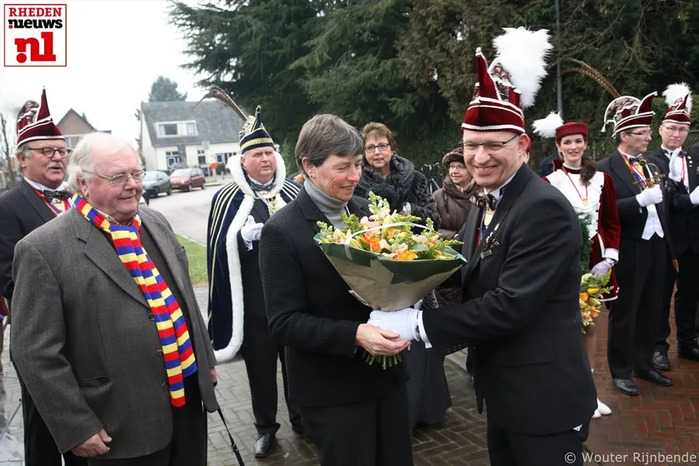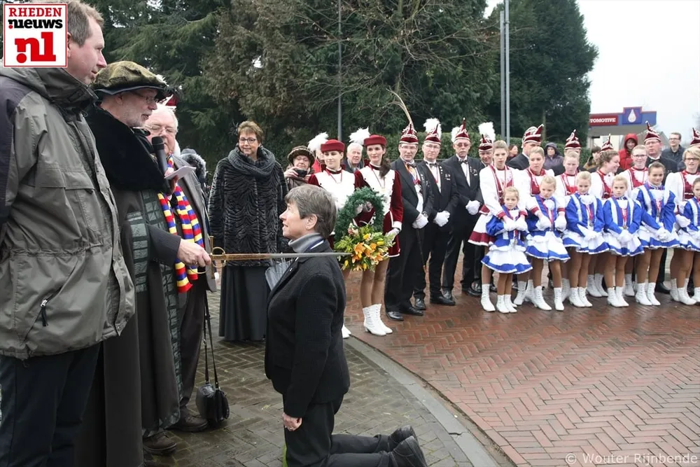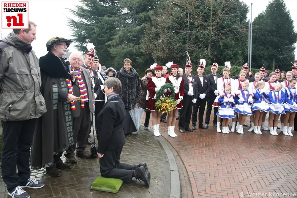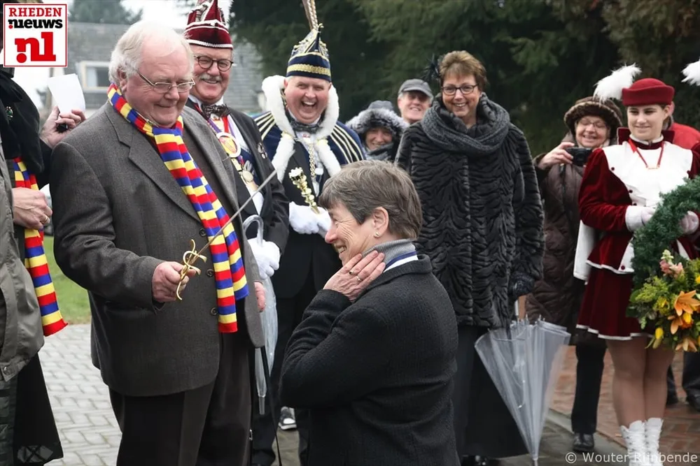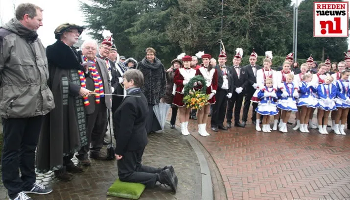Kees Staats verrichtte deze handeling bij de Rhedense Leeuw en in het bijzijn van heel veel Rhedenaren, nadat ze opgehaald werd door de carnavalsvereniging de Heiknüüters en de March- & Showband Rheden.