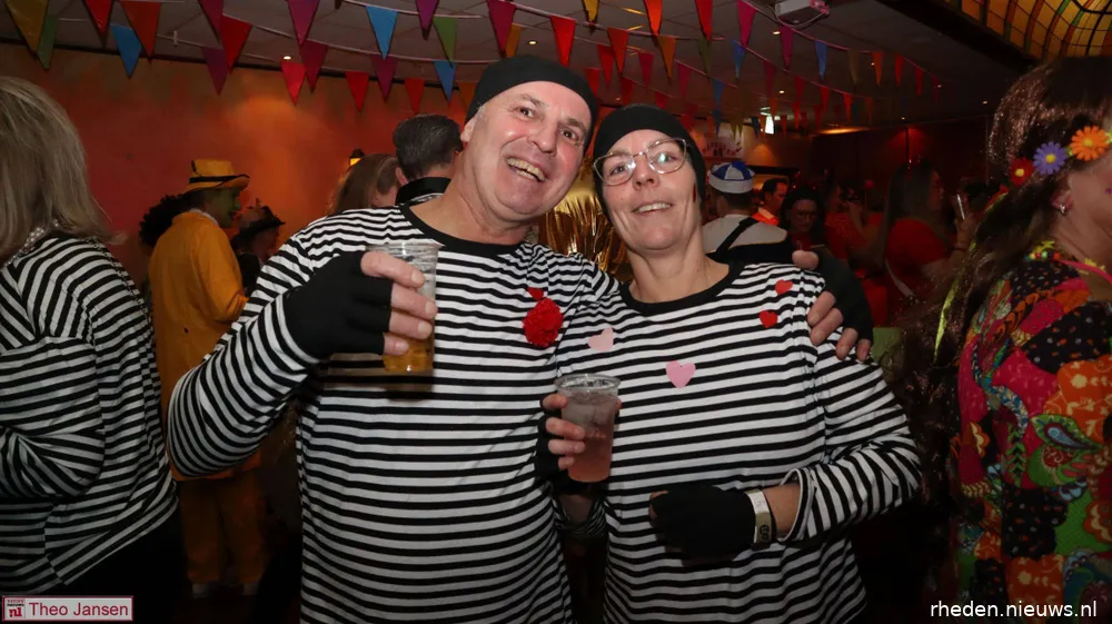 Vanaf het begin zat de sfeer er goed in. Jong en oud kwamen massaal op het feest af en vrijwel iedereen had zich uitbundig verkleed. Van kleurrijke clowns tot opvallende glitterpakken en creatieve groepsoutfits: de zaal kleurde vrolijk en feestelijk.