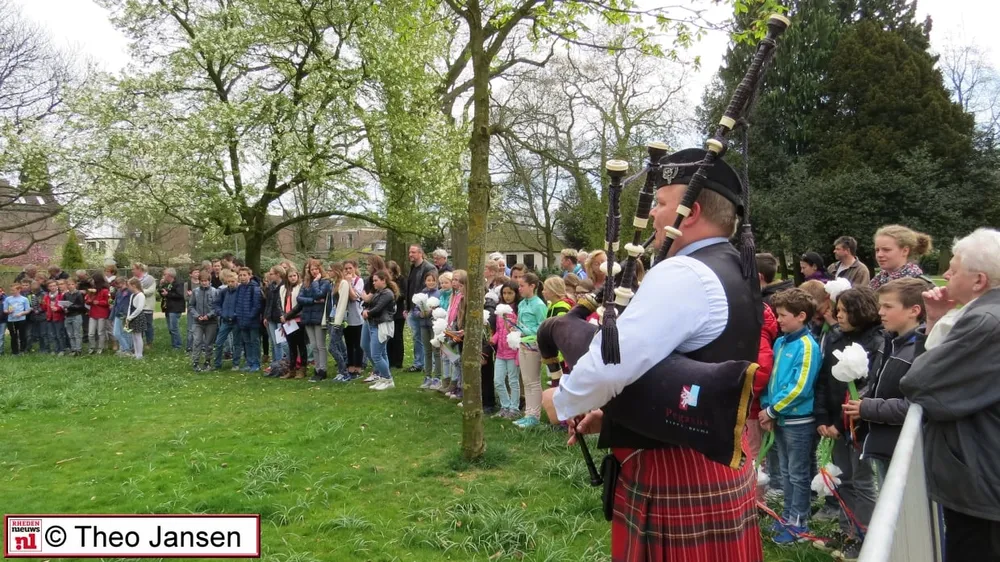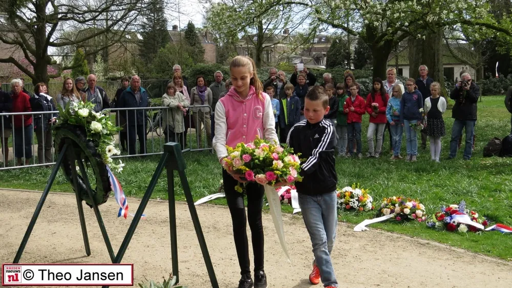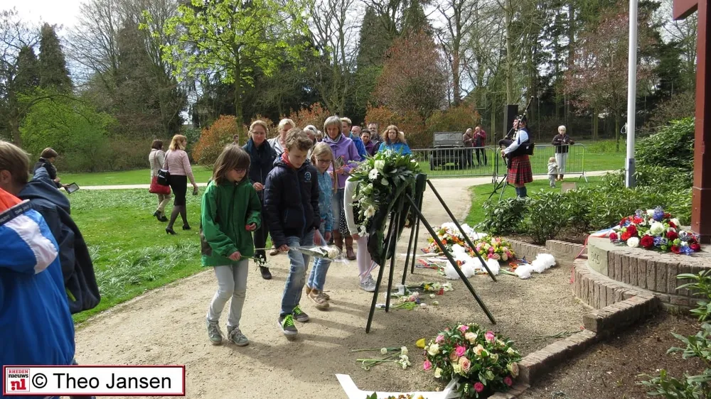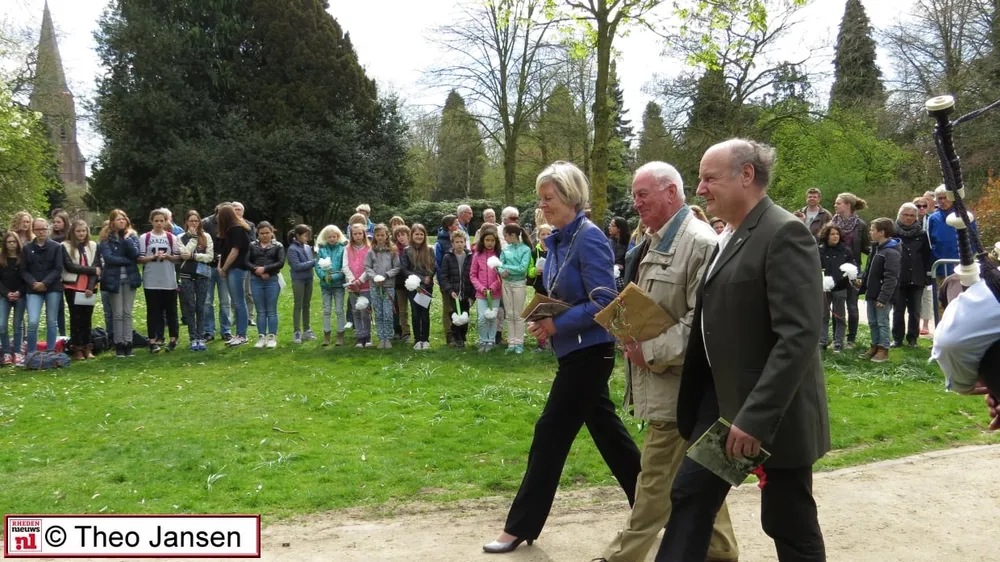 DIEREN - Afgelopen donderdag 16 april was er een herdenkingsplechtigheid in het Carolinapark te Dieren. Belangstellenden, genodigden en leerlingen van diverse scholen hadden zich verzameld rond het herdenkingsmonument in het Carolinapark.