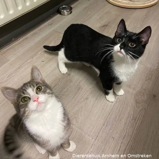 REGIO Maak kennis met Indy en Domino: twee katten die elkaars beste maatjes zijn. Ze trekken graag samen op, leren veel van elkaar en geven elkaar zichtbaar vertrouwen. Dat is fijn, want Domino is nog wat verlegen. Dankzij de rustige, stabiele Indy maakt hij al mooie stapjes: hij durft inmiddels in de buurt te komen zitten en kijkt nieuwsgierig mee. Indy zelf is in het begin wat afwachtend, maar eenmaal gewend is het een échte kroelkont – dol op knuffels en aandacht.