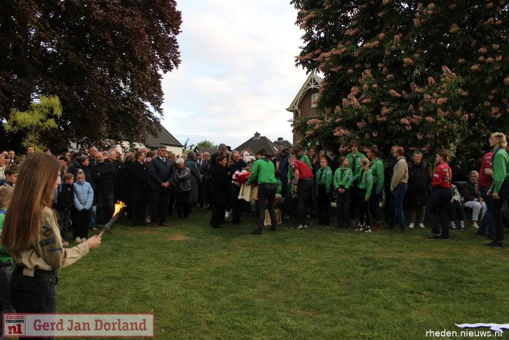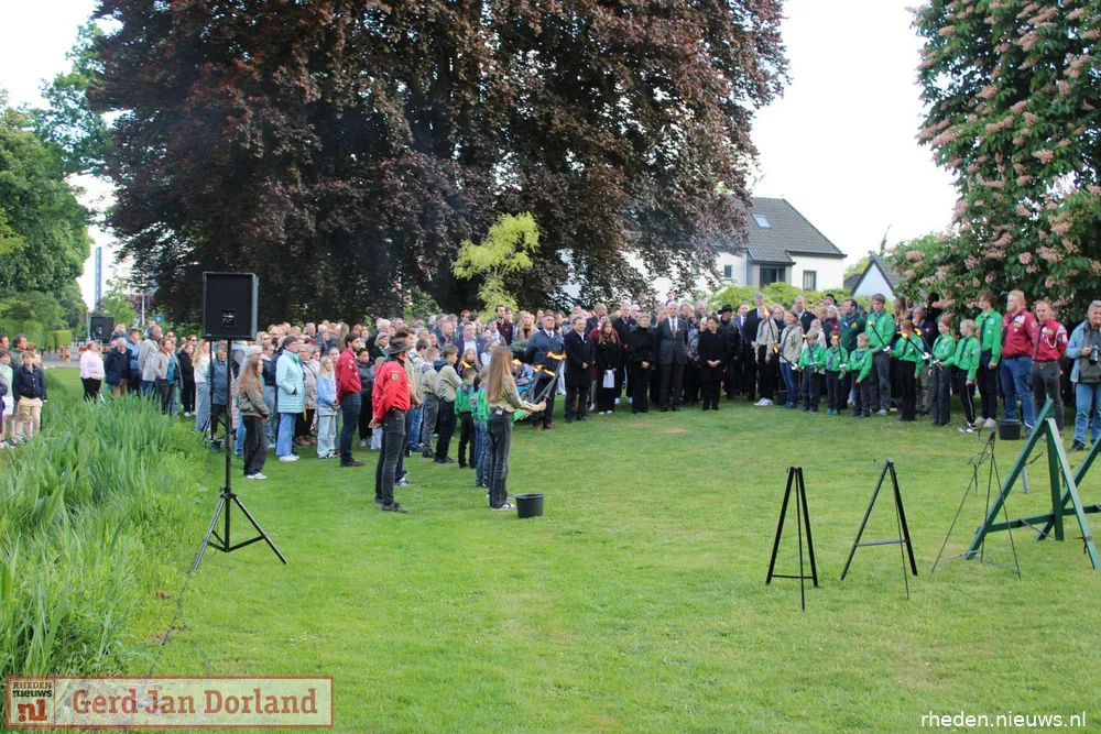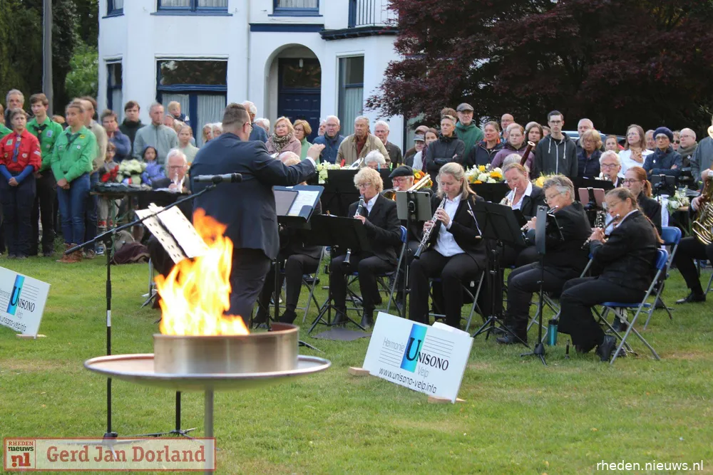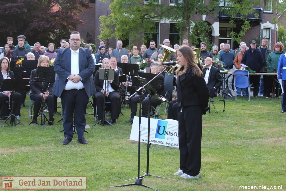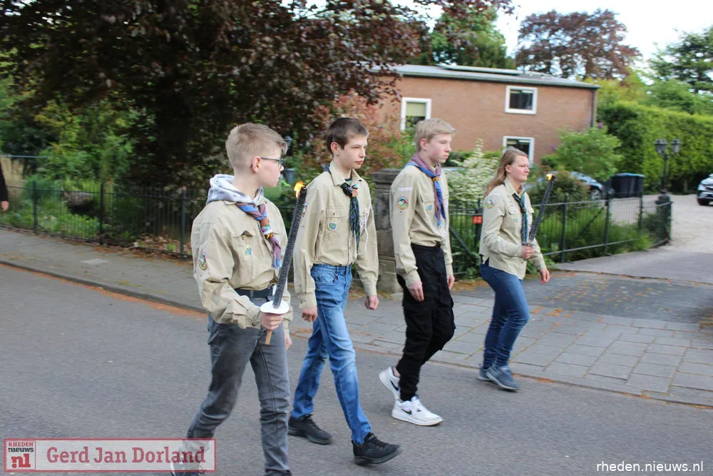 Bij het Herdenkingsmonument speelde Harmonie Unisono Velp stemmige muziek. De Vrijheidsvlam werd aangestoken, terwijl scouts van De Markesteengroep en de Velpsche Woudloopers – jong en oud – een erewacht vormden met brandende fakkels. Toen alle bezoekers zich rondom het monument hadden verzameld, droeg Delani haar gedicht voor. Tijdens de twee minuten stilte klonk slechts het gezang van een merel, na het traditionele tromgeroffel en het taptoesignaal.