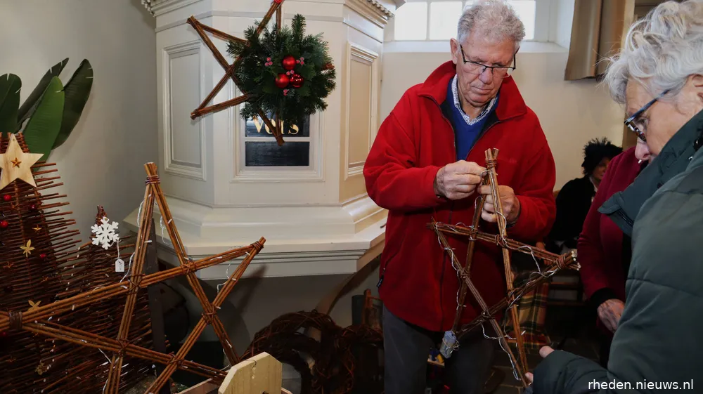 Buiten waren er daarnaast enkele vertrouwde gezichten. Zo was de wilgenvlechter opnieuw aanwezig, inmiddels een bekend onderdeel van de kerstmarkt. Ook de waldhoornblazers zorgden buiten voor een herkenbare, winterse sfeer.