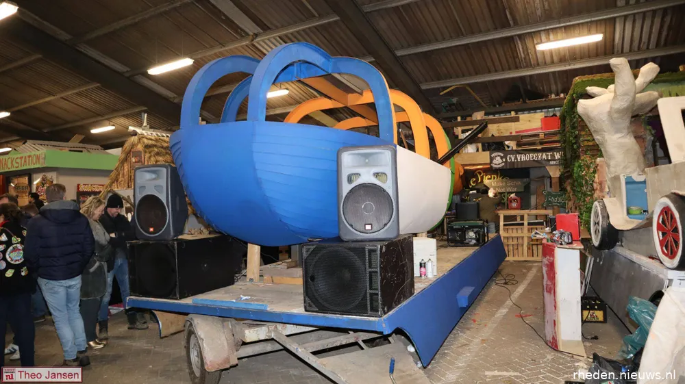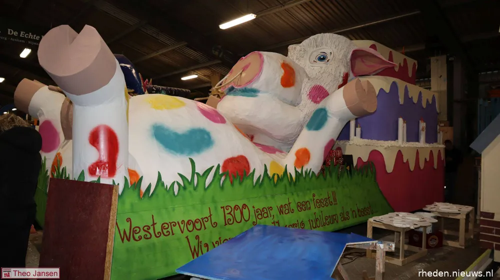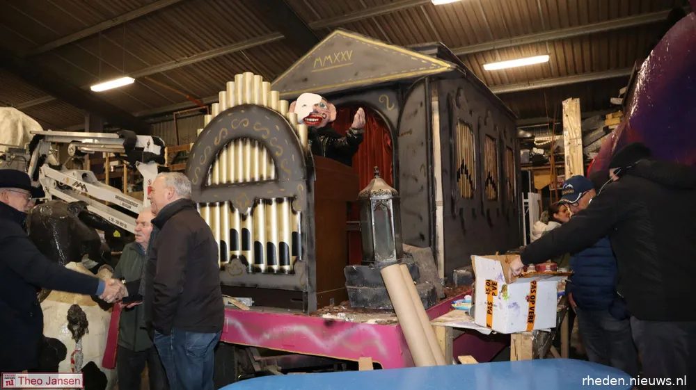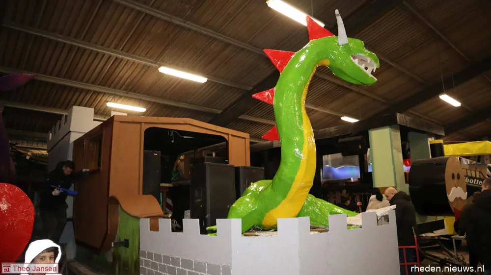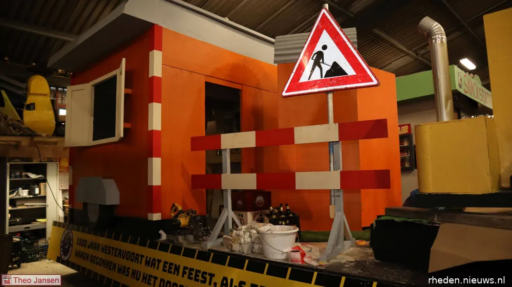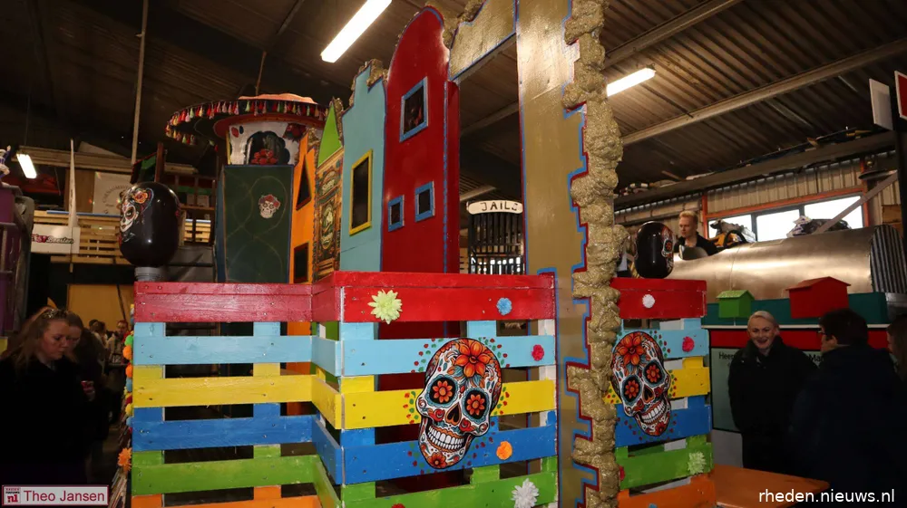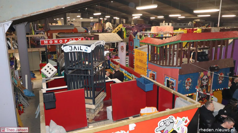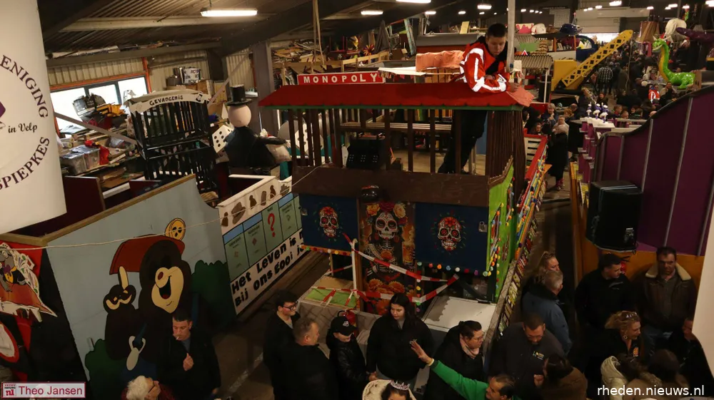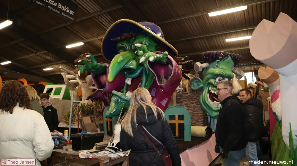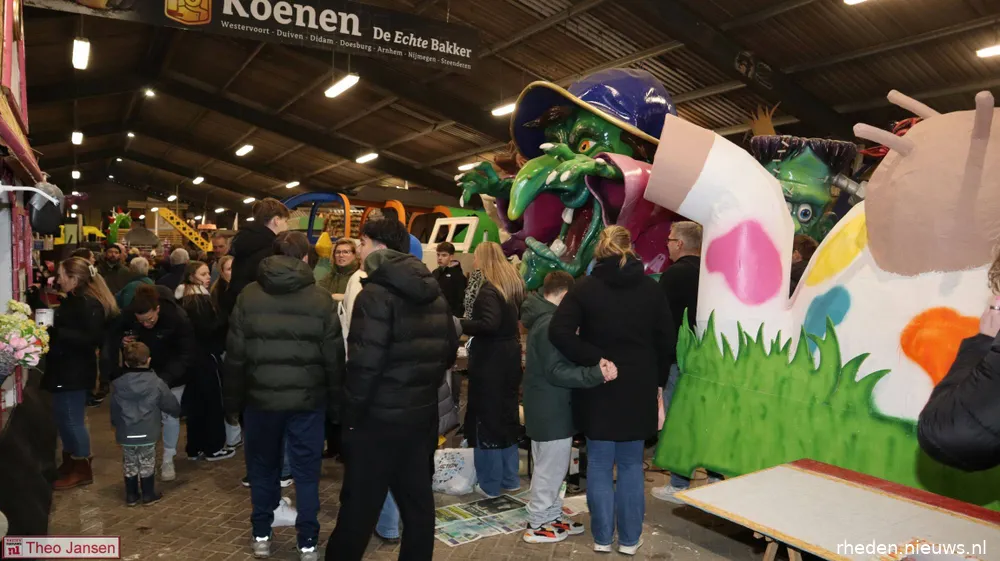 Om 14.30 uur gingen de deuren open en liep het al snel vol met nieuwsgierige bezoekers. Zij konden van dichtbij zien hoe de wagens er dit jaar voor staan. Op veel plekken werd nog hard gewerkt aan de laatste details. Denk aan belettering, plak- en schilderwerk en het afwerken van houtconstructies. Sommige wagens waren vrijwel gereed, terwijl andere groepen nog flink aan de bak moeten om alles op tijd af te krijgen voor de optocht van volgende week in Westervoort.