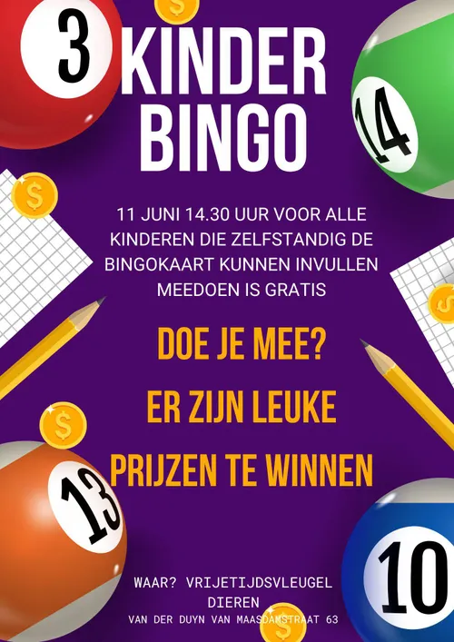 “De kinderbingo is een fijne gelegenheid voor kinderen om plezier te maken, nieuwe vriendjes te ontmoeten en iets leuks te winnen,” aldus de organisatie. “We hopen op een grote opkomst!”