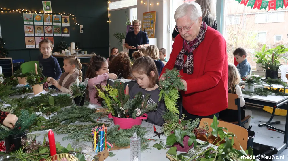 Dit jaar zijn enkele bewoners van de Ulenpas samen met de kinderen uit de groepen drie en vier kerststukjes gaan maken. Samen werkten zij aan mooie creaties voor tijdens het kerstdiner.Het was een gezellig ochtend waarin jong én oud hard aan het werk waren. Er heerste veel gezelligheid en hier en daar werd er over het kerstdiner gesproken en over hoe iedereen kerst viert. Dat waren mooie gesprekken.