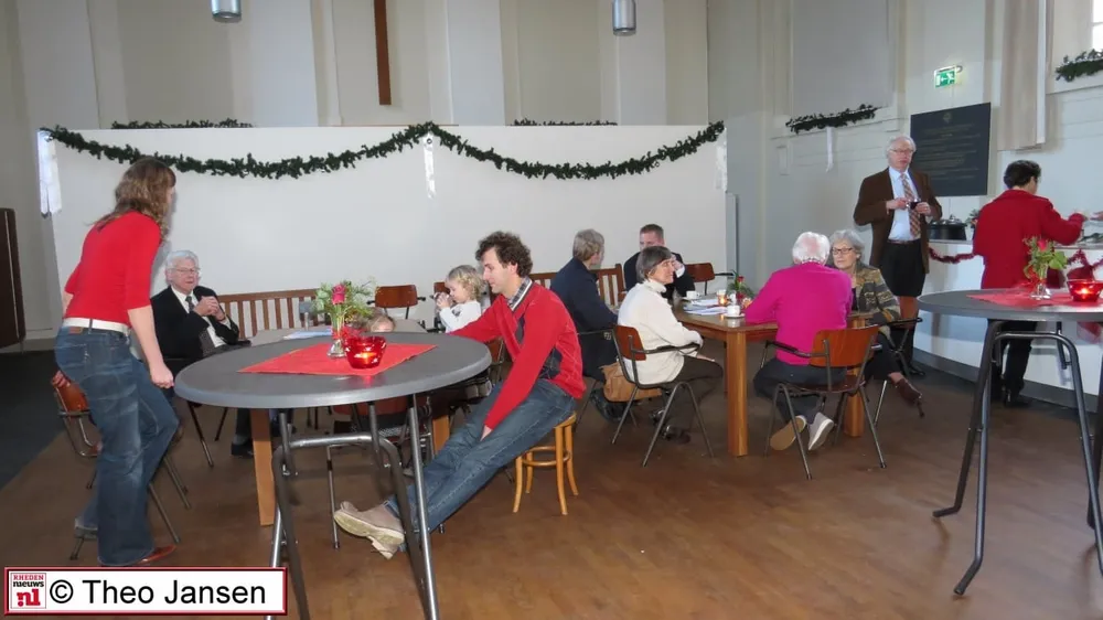 Natuurlijk was er volop gelegenheid tot ontmoeting in de kerk en was er warme chocomel, glühwein, koffie of een versnaperingen voor de liefhebber. Er kon gezellig onder het genot van een drankje gepraat worden met de vele bezoekers die de kerk bezochten en plaats namen aan de tafels in de kerk.