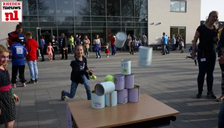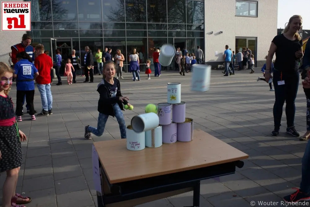 In de aula van de school was een rad van fortuin waar mooie prijzen gewonnen konden worden.