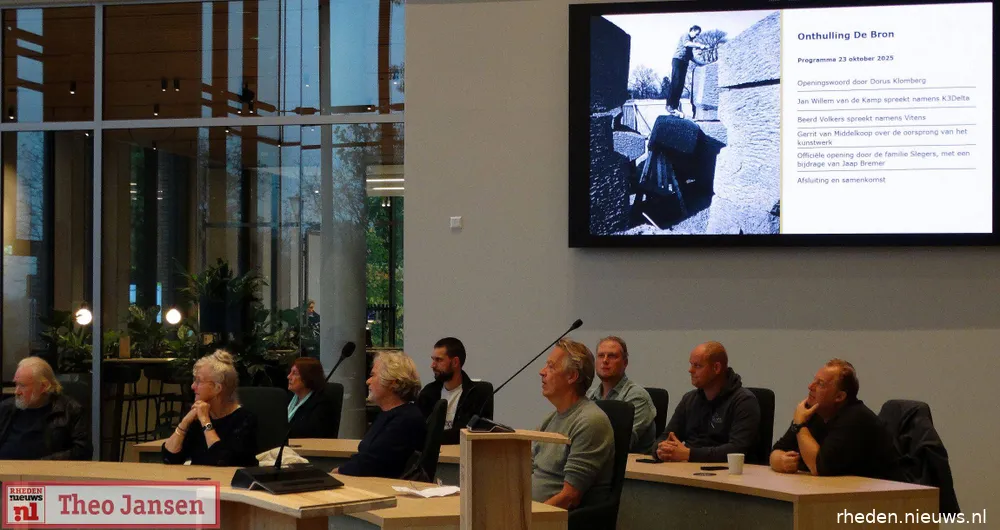 DE STEEG – Het monumentale kunstwerk De Bron van kunstenaar Piet Slegers heeft een nieuwe, prominente plek gekregen bij het gemeentehuis in De Steeg. Het werk, dat de oerkracht van de aarde en het vrijkomende Veluws water symboliseert, stond sinds 1968 bij het voormalige hoofdkantoor van Waterbedrijf Gelderland in Velp. Dankzij een gezamenlijke inspanning van Vitens, K3Delta en de familie Slegers is het kunstwerk nu duurzaam herplaatst, zodat het behouden blijft voor de inwoners van de gemeente Rheden.