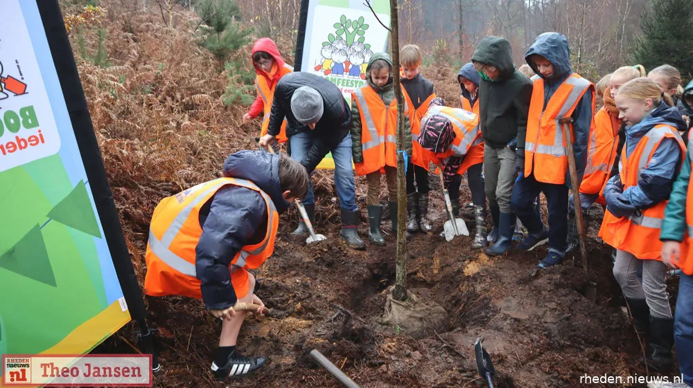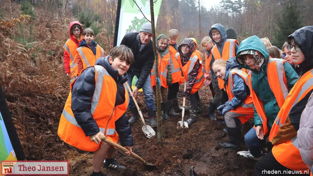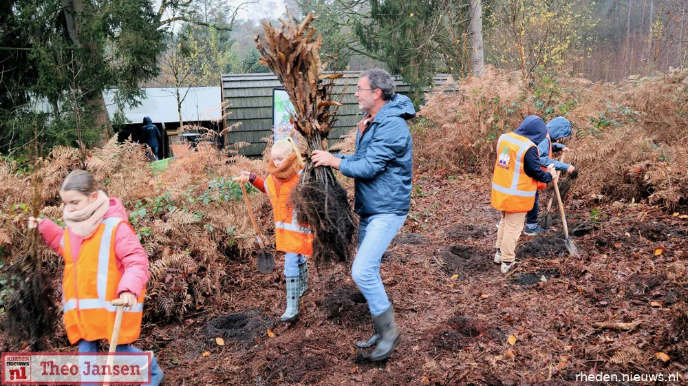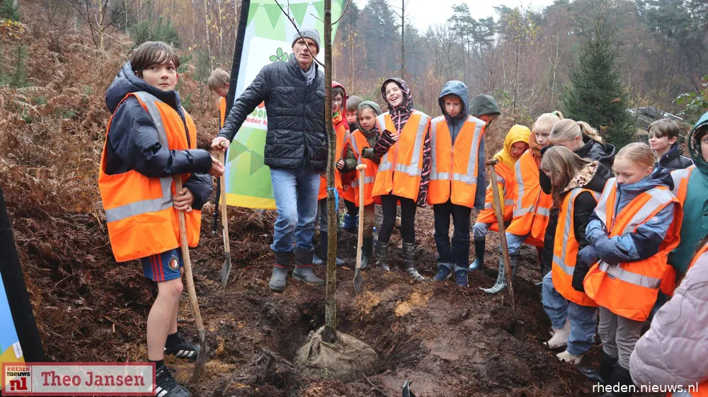 VELP – Woensdag 19 november 2025 hebben 29 leerlingen van groep 7 van basisschool De Arnhorst in Velp in totaal 400 jonge bomen geplant achter Buitenplaats Beekhuizen. Dat deden zij tijdens de Boomfeestdag, op uitnodiging van de gemeente Rheden. Wethouder Dorus Klomberg plantte samen met twee leerlingen de eerste boom, waarna de rest van de klas aan de slag ging.