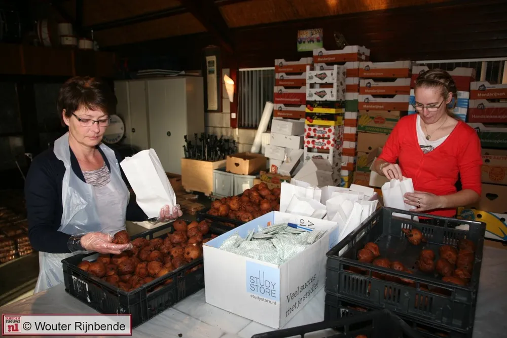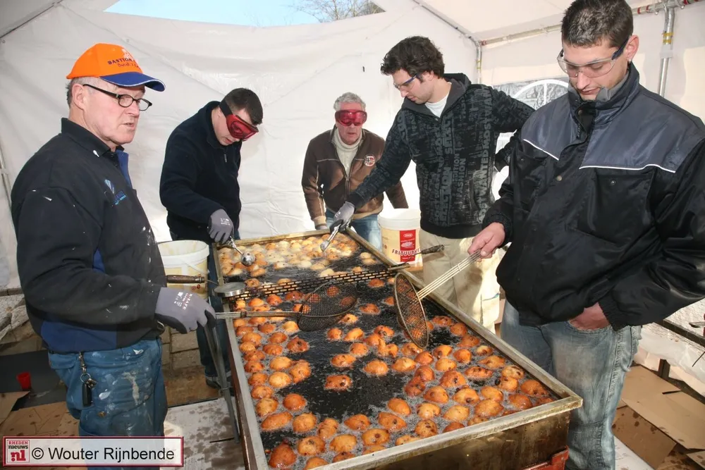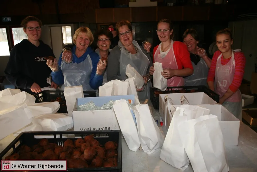 Veel beignets en oliebollen werden al vooraf besteld naar aanleiding van flyers die in het dorp waren bezorgd. Heeft u de flyers gemist, of nog geen oliebollen besteld, geen nood ! Dinsdag 30 december gaan de leden langs de deuren in Rheden om oliebollen en appelbeignets te verkopen.