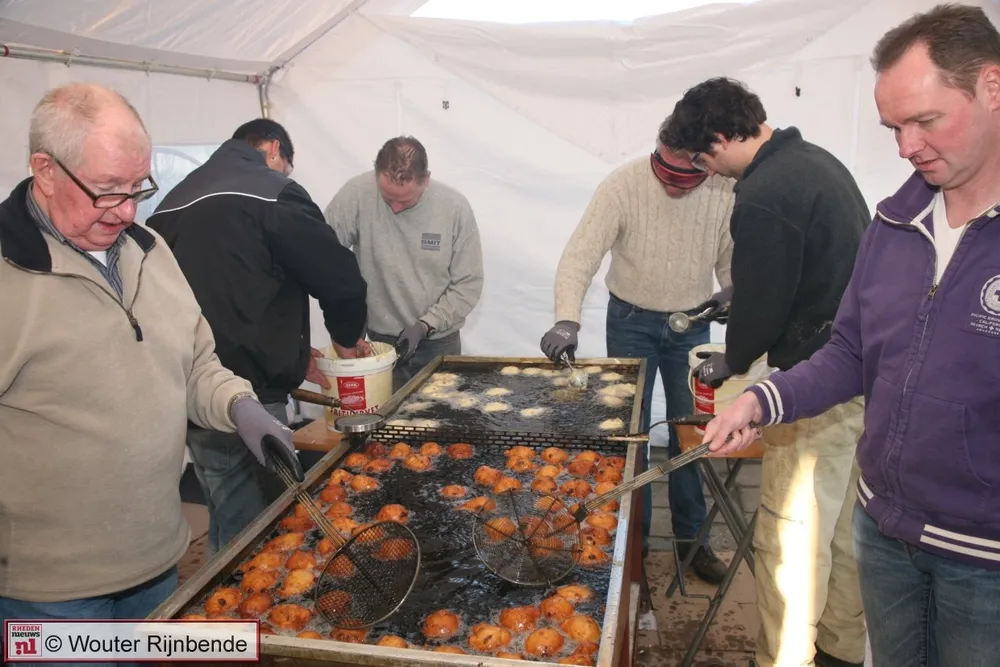Van 05:00 's morgens tot 20:30 's avonds was de vereniging druk bezig met het bakken van 2500 appelbeignets en 8000 oliebollen.