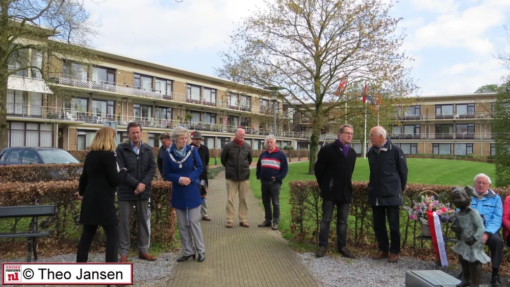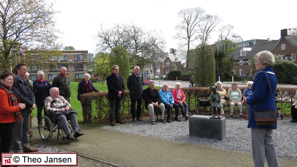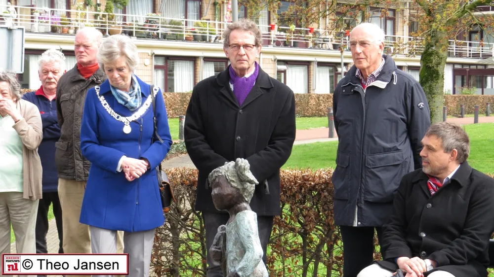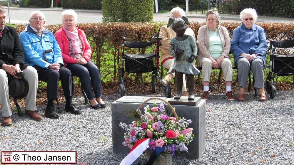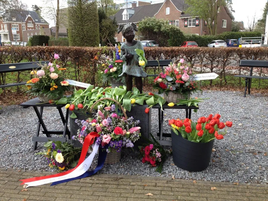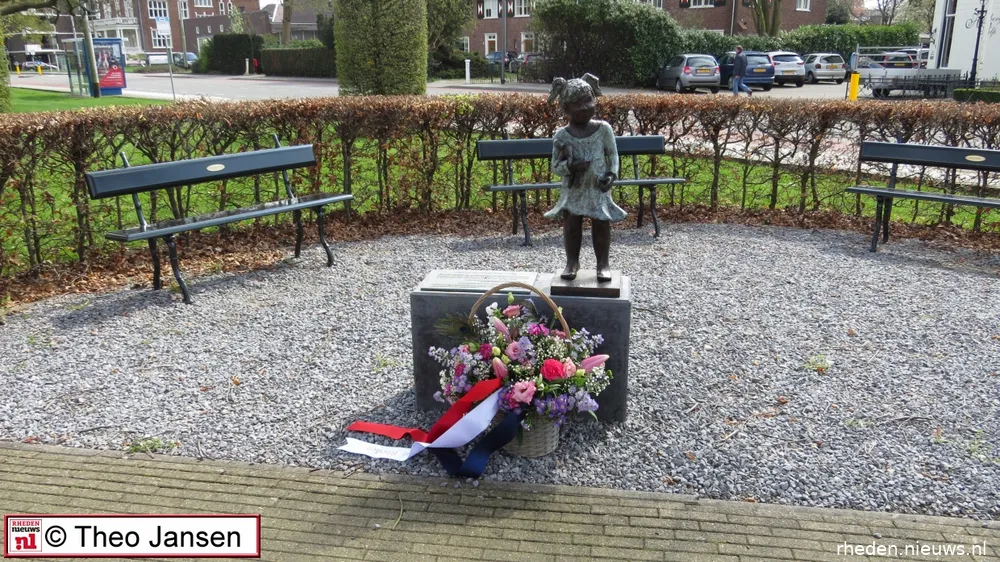 Ze legden bloemen bij het beeld ‘het ondergedoken kind’ dat de Velpse kunstenares Yvon van Wordragen vorig jaar maakte. Architect Willem Heineman legde bloemen namens het organiserende comité en bestuurslid Patrick Jansen namens Velp voor Oranje. Een dag eerder, op 16 april, de dag dat Velp werd bevrijd, plaatsten burgemeester Petra van Wingerden-Boers en wethouder Ronald Haverkamp een grote bloemenmand namens de gemeente Rheden.