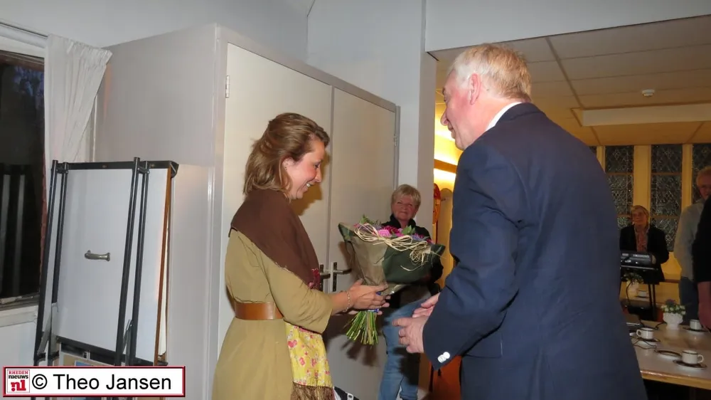 Na het plaatsen van de tekst kreeg Nicole Olland een bloemetje aan geboden en werd zij bedankt voor de goede samenwerking van de gemeente met alle betrokkenen. Hierna werden alle aanwezigen uitgenodigd voor een drankje op de goede afloop van de renovatie.