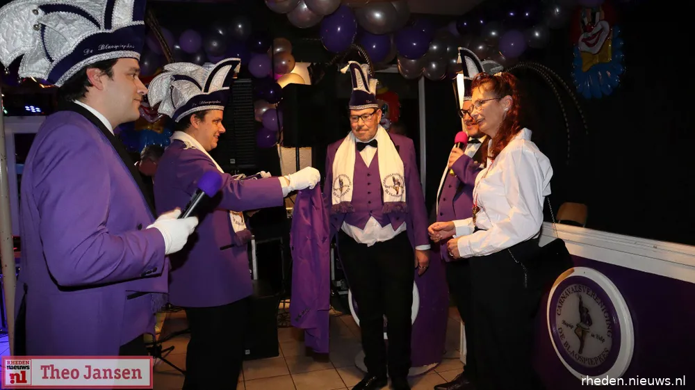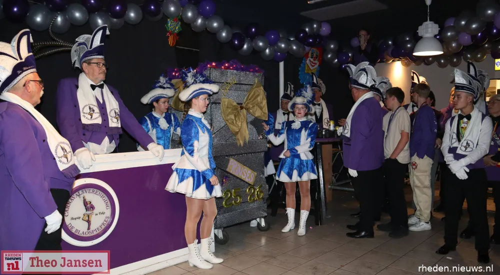 ROZENDAAL/VELP – In feestburcht De Veluwezoom op de Pinkenberg is zaterdag 29 november de traditionele prinswissel gehouden bij carnavalsvereniging De Blaospiepkes. Vanaf nu zwaaien Prins Damian de 1e en zijn Prinses Shirley, bijgestaan door Adjudant Gerard en pagedame Rowena, de scepter over het carnavalsjaar 2025-2026. Diverse bevriende carnavalsverenigingen waren aanwezig om het nieuwe prinsenpaar in te luiden.