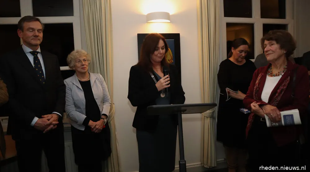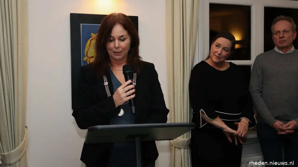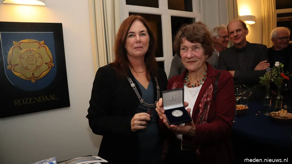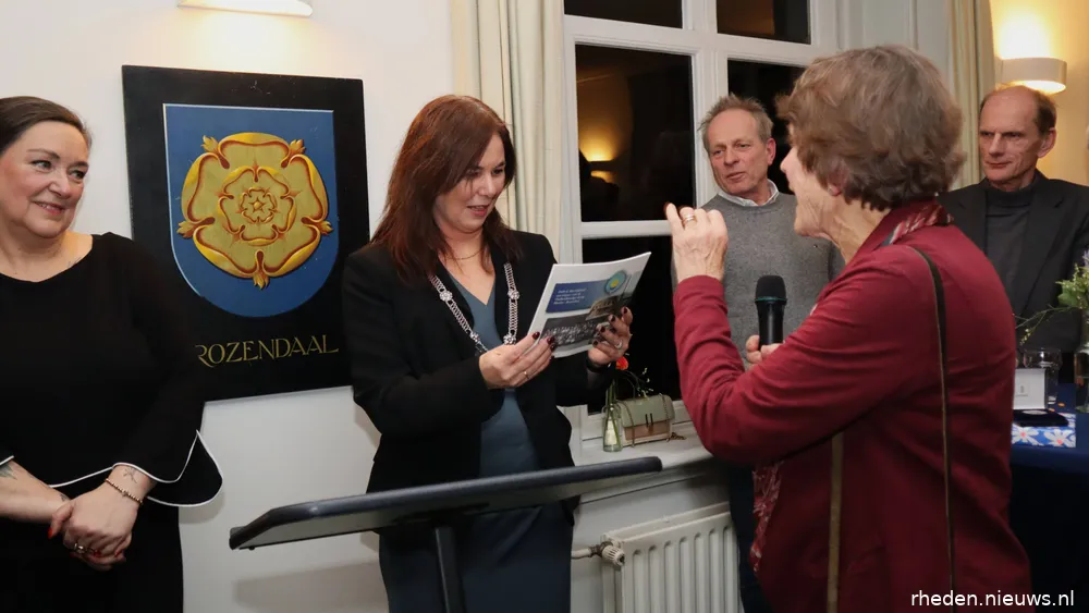 “Normaal gesproken is het officiële gedeelte afgelopen en gaan we met elkaar in gesprek met een drankje en een hapje, maar er is nog één belangrijk ding aan de orde, waarvoor ik graag mevrouw Cathrien van de Ree naar voren wil hebben. Het is vanavond een bijzondere dag omdat ik de erepenning ga uitreiken aan mevrouw Cathrien van de Ree, als waardering voor haar inzet voor Rozendaal.”