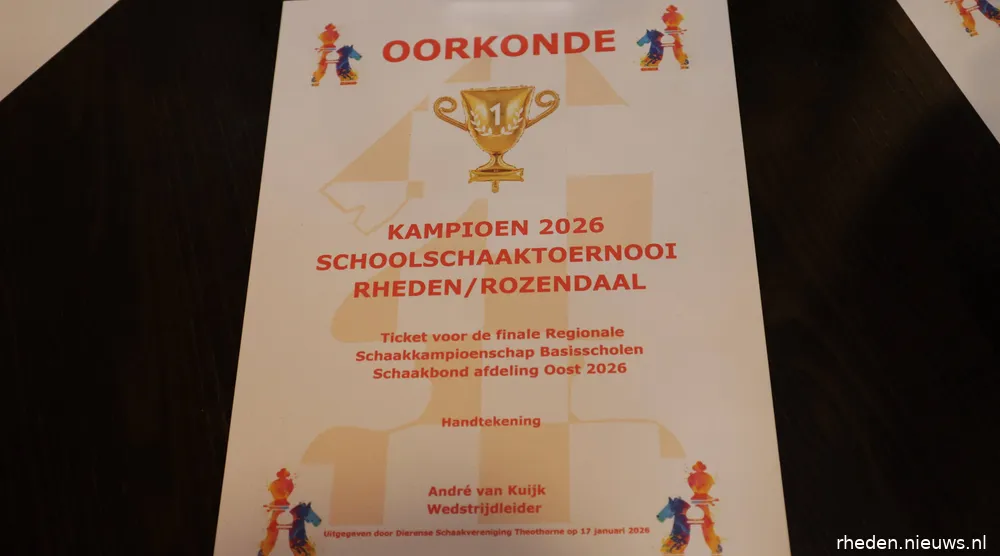 DIEREN – Cultureel Centrum Theothorne stond afgelopen zaterdag in het teken van het jaarlijkse schoolschaaktoernooi. Ruim 100 leerlingen van zeven basisscholen deden mee. In totaal streden 21 teams om de titel Schoolschaakkampioen Rheden/Rozendaal.