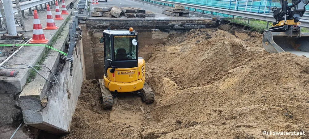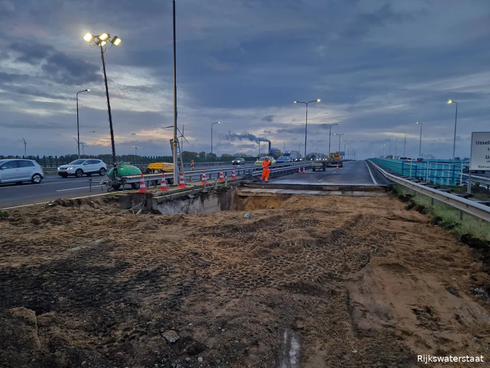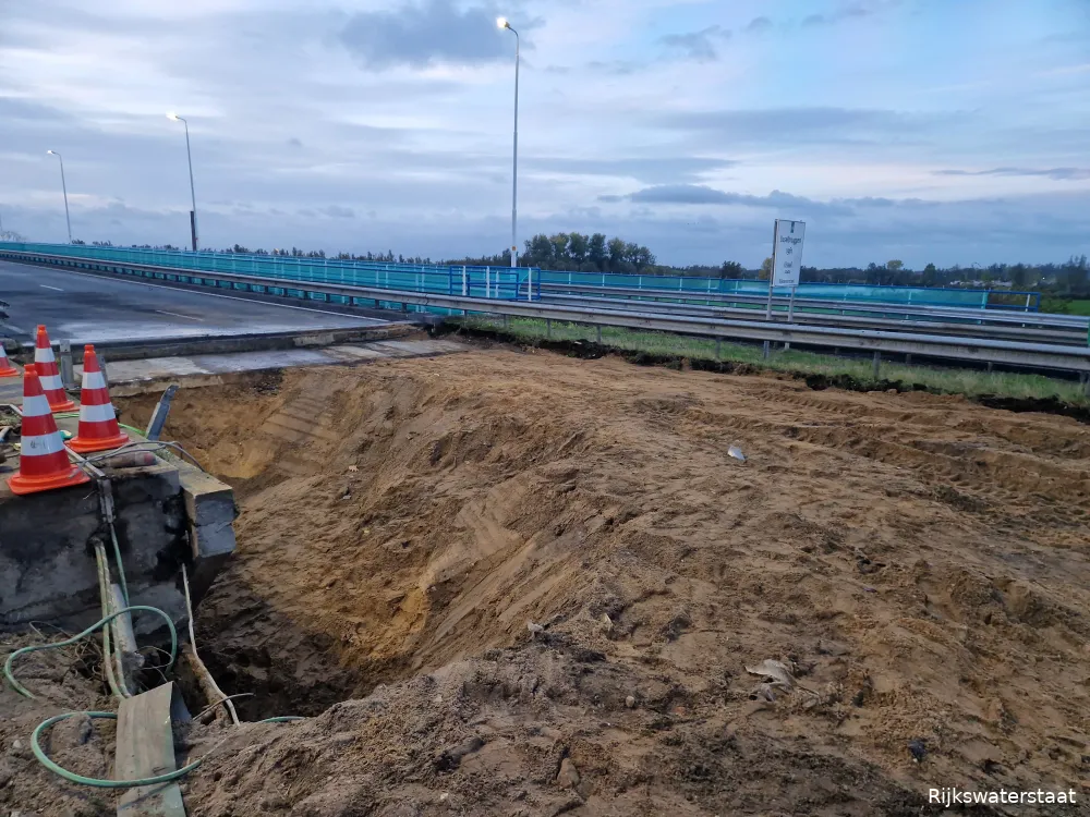 Rijkswaterstaat kan nu gaan werken aan de oplossing. Ze gaan zand weggraven tot aan de fundering van het betonnen landhoofd. Daarna wordt er een nieuwe wand gemaakt, zodat het probleem niet weer kan ontstaan. Als dit is gebeurd, vullen ze het gat op en gaat Rijkswaterstaat de de snelweg ter plekke opnieuw geasfalteren. De verwachting is dat het tot zondag duurt om deze werkzaamheden uit te voeren.
