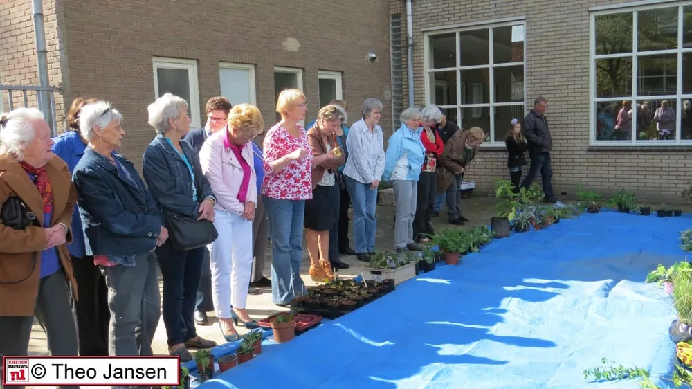 Hierna werd iedereen verzocht naar buiten te gaan en bij de planten te gaan staan. Bij de 1e bel mocht een ieder één plant pakken die hij graag wilde hebben, zo ook bij de 2e bel. Daarna was het vrij uitzoeken en kon men met de nieuwe aanwinsten terug naar huis.