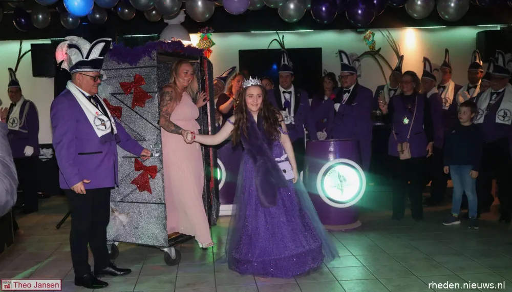 Een van de hoogtepunten was de onthulling van de nieuwe jeugdprinses. Onder luid gejuich verscheen zij uit een binnengereden kist. Direct daarna volgde de officiële installatie, uitgevoerd door adjudant Pas Jordens samen met president Mark Jordens.