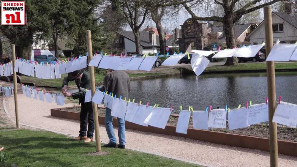 Deze zouden eigenlijk tot zondag blijven hangen maar door de harde wind belanden een aantal tekeningen in het water en heeft een buurtbewoner deze uit de vijver gevist en de overige tekeningen uit voorzorg opgeruimd. De tekeningen zijn tot 5 mei nog te bewonderen in Boekhandel Jansen & de Feijter.