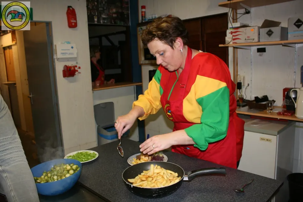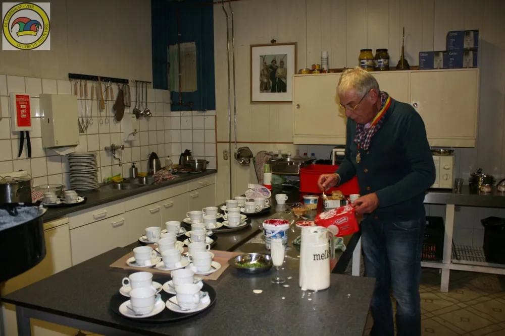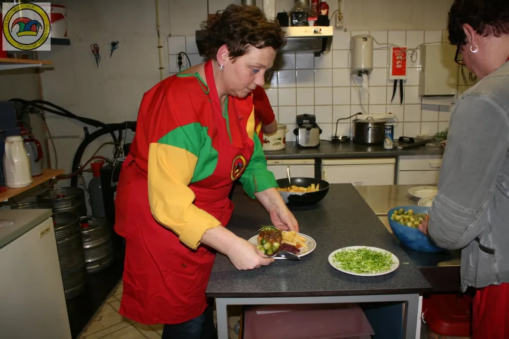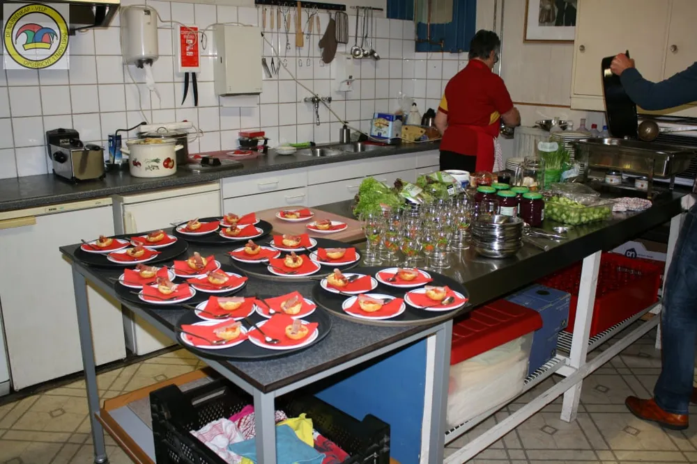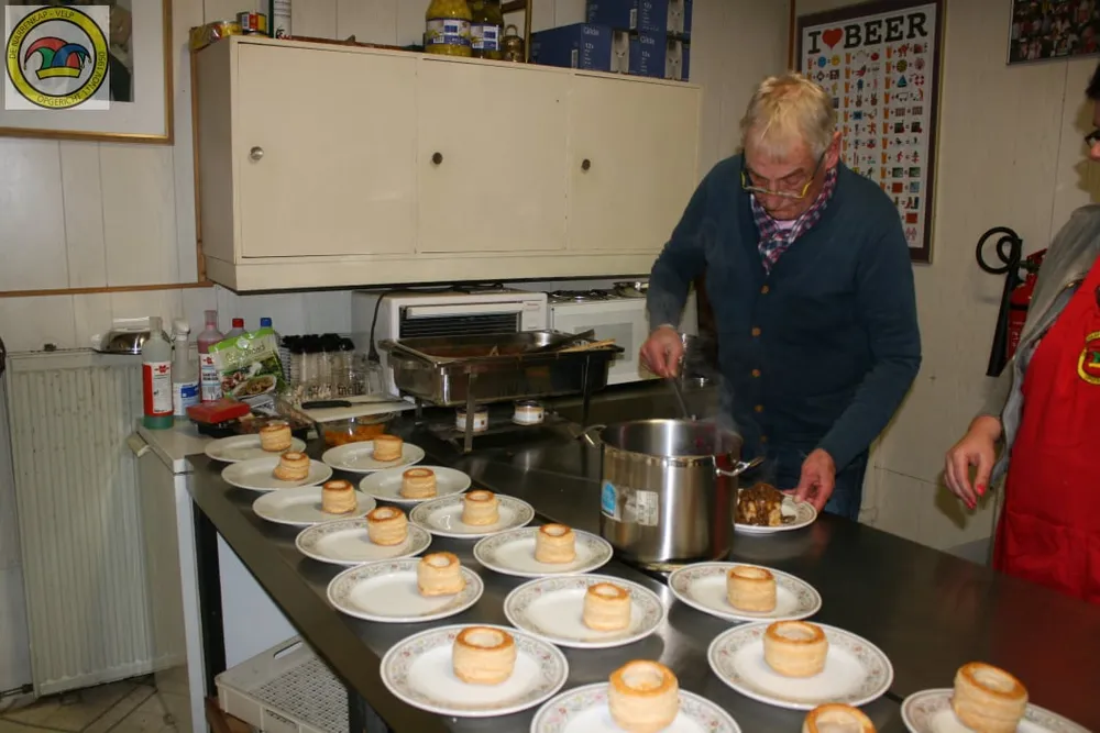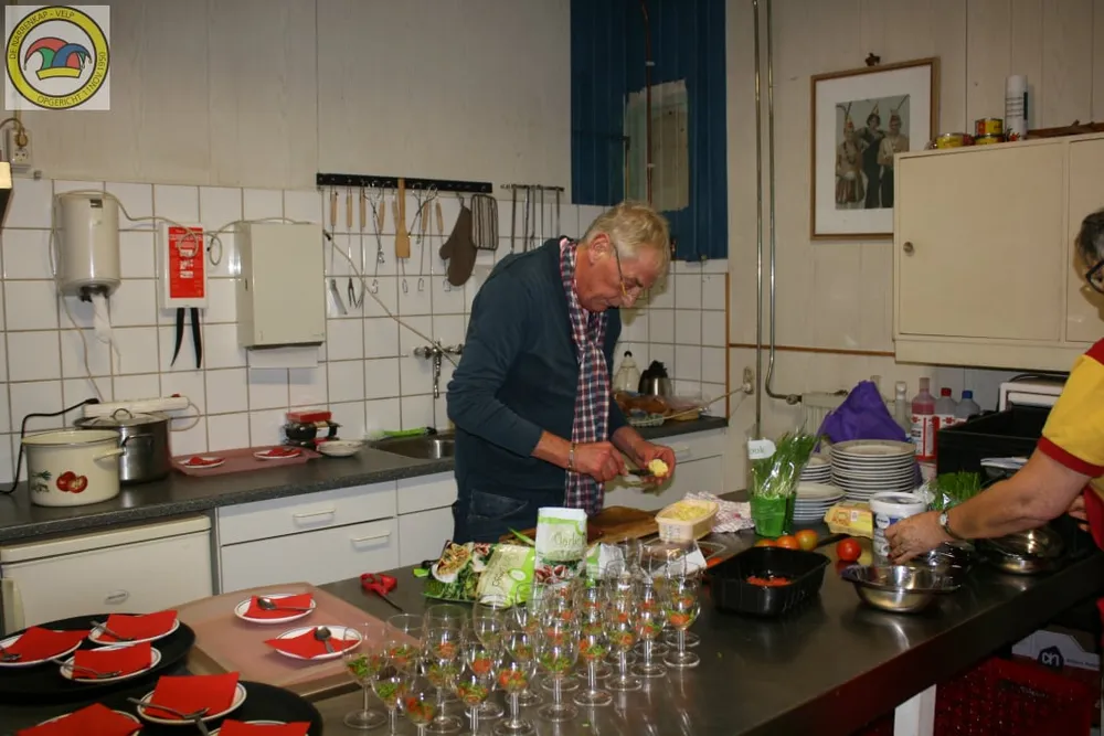 VELP - Het was een drukte van belang in de keuken van het Narrenhuus, tijdens het seniorendiner, maar gelukkig had amateur topkok Huub Prins het allemaal onder controle. 35 senioren uit Velp waren dankbaar voor dit gezellige culinaire avondje uit.