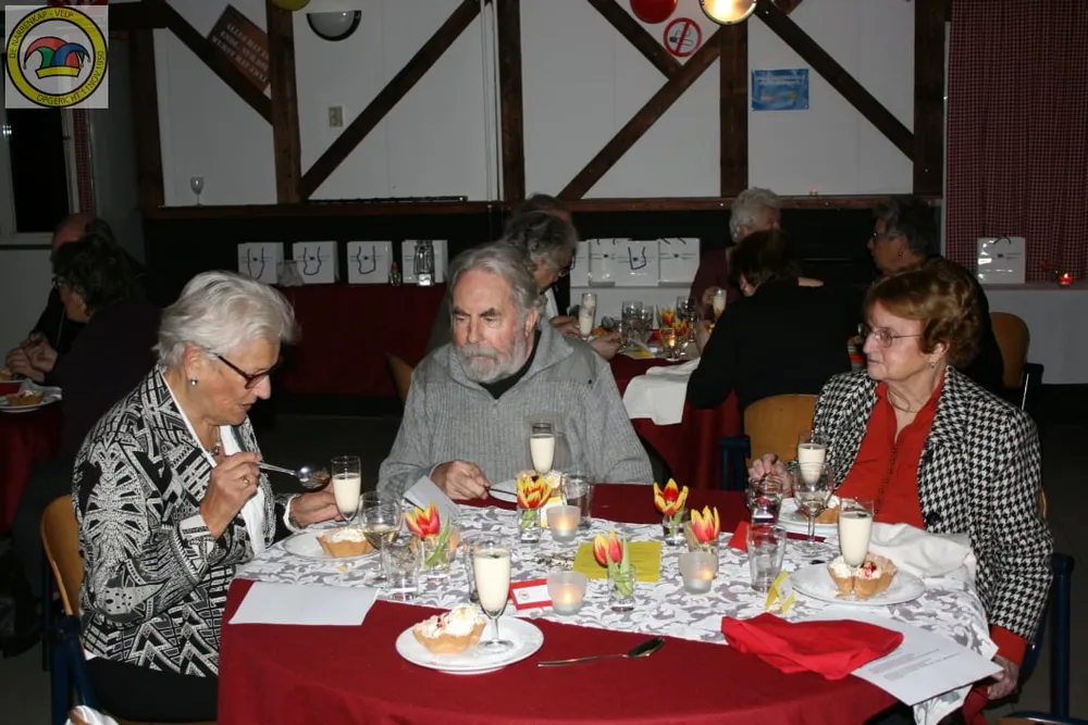 Tussen de gerechten door was er accordeon muziek van Ron Ederveen, trad ook de dansgarde op en de dames van de Narrenkap hadden ook nog een act. Enkele senioren waagden zich zelfs nog op de dansvloer en maakten een dansje.