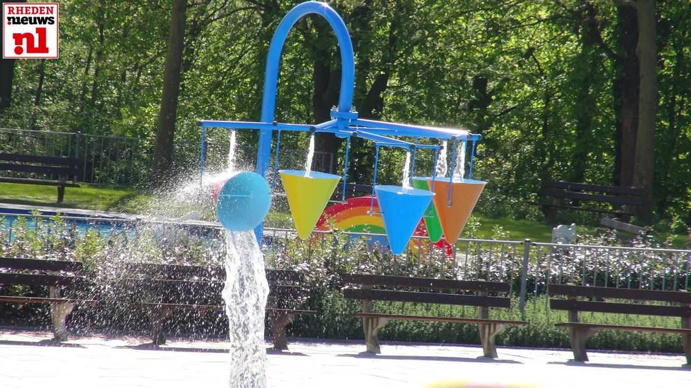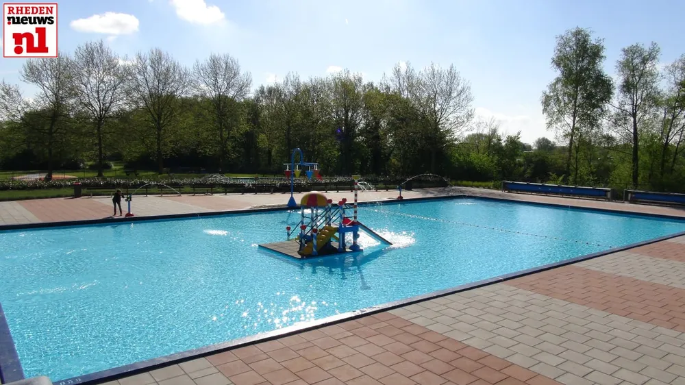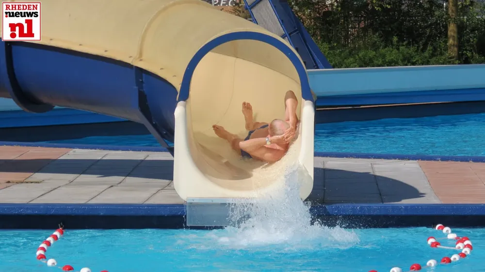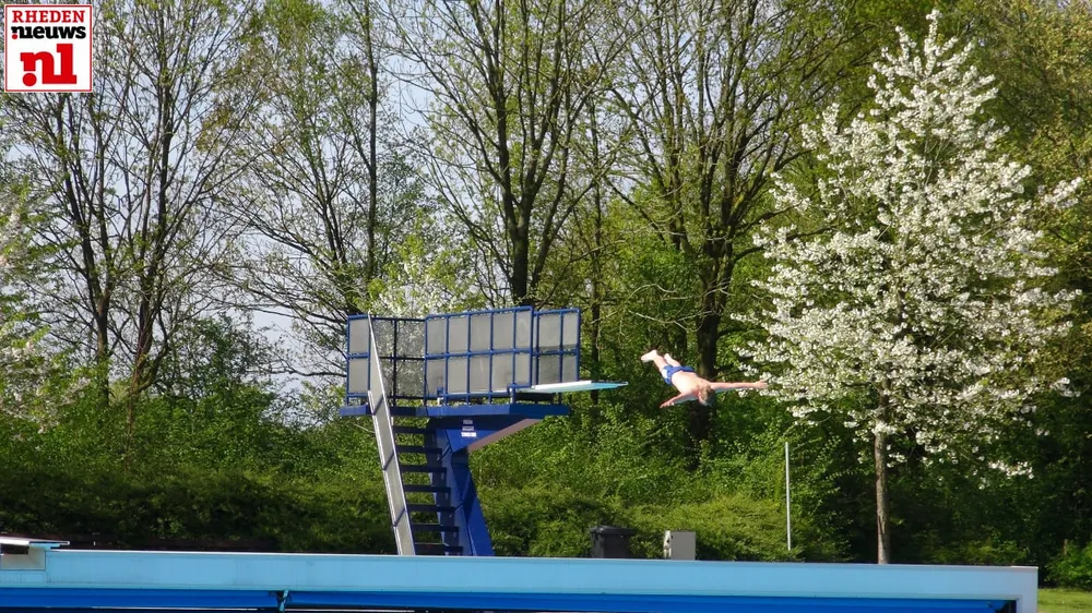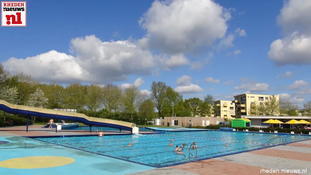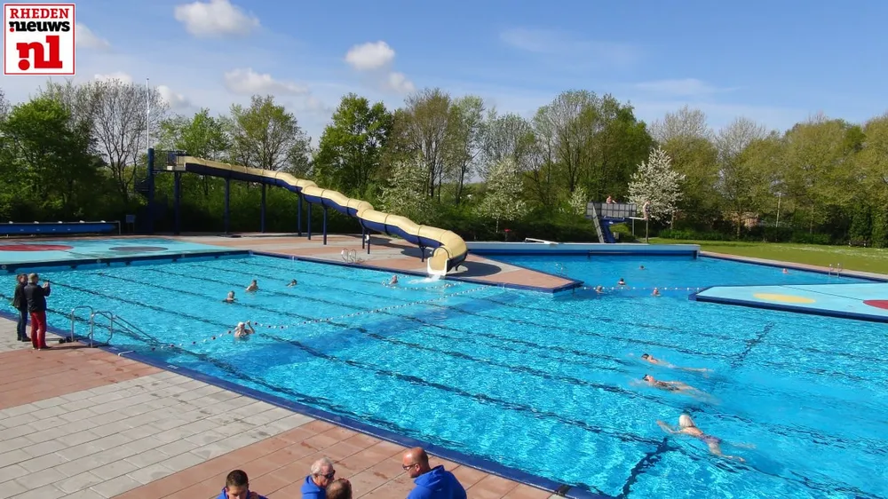 Enkele bezoekers doken daarna meteen in het frisse water om eindelijk weer wat baantjes te kunnen zwemmen, de kinderen vermaakten zich op de glijbaan, duikplank en de extra spellen die op deze openingsdag aanwezig zijn van Rhedens ondernemer Sportieve Evenementen Peter Oversteegen.