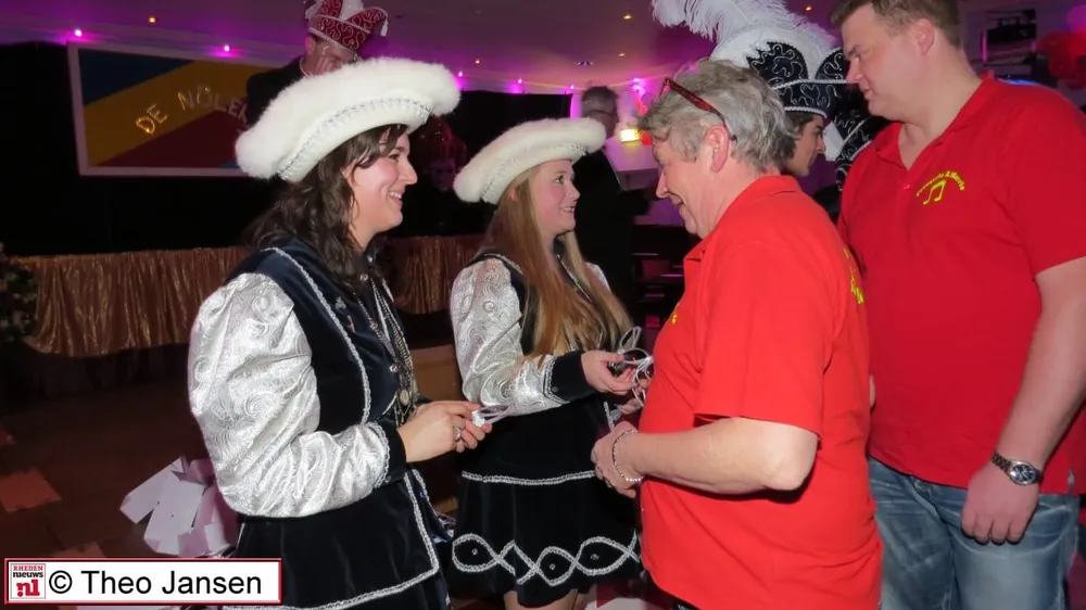 DIEREN - De carnavalsvereniging de Nölers hield haar Prinsenbal in feestburcht Theothorne in Dieren op zaterdag 10 januari. Daar namen zij afscheid van Timo de Eerste en van Adjudant Hans rond 22.15 uur, waarna de nieuwe Prins en Adjudant en hofdames werden geïnstalleerd.