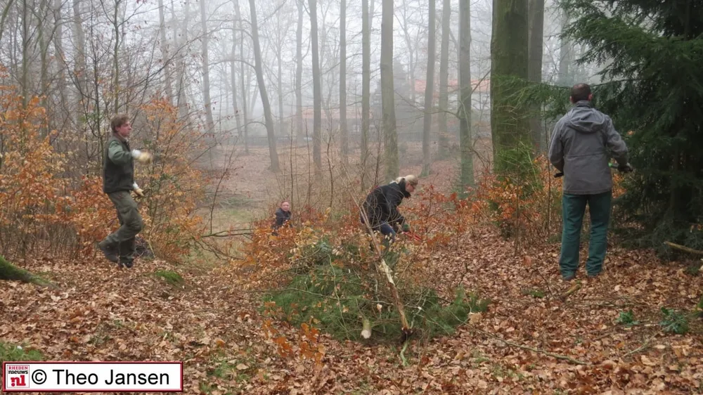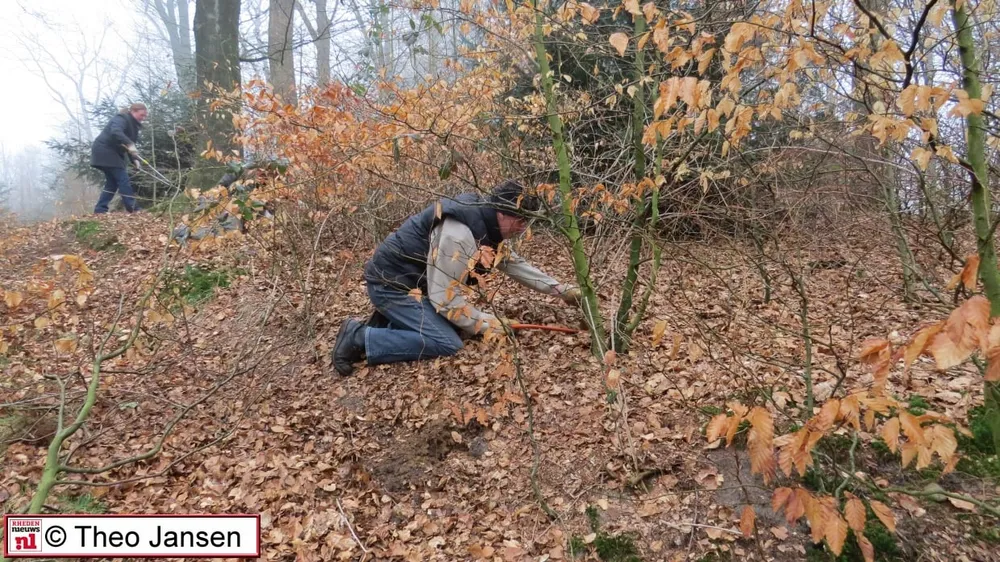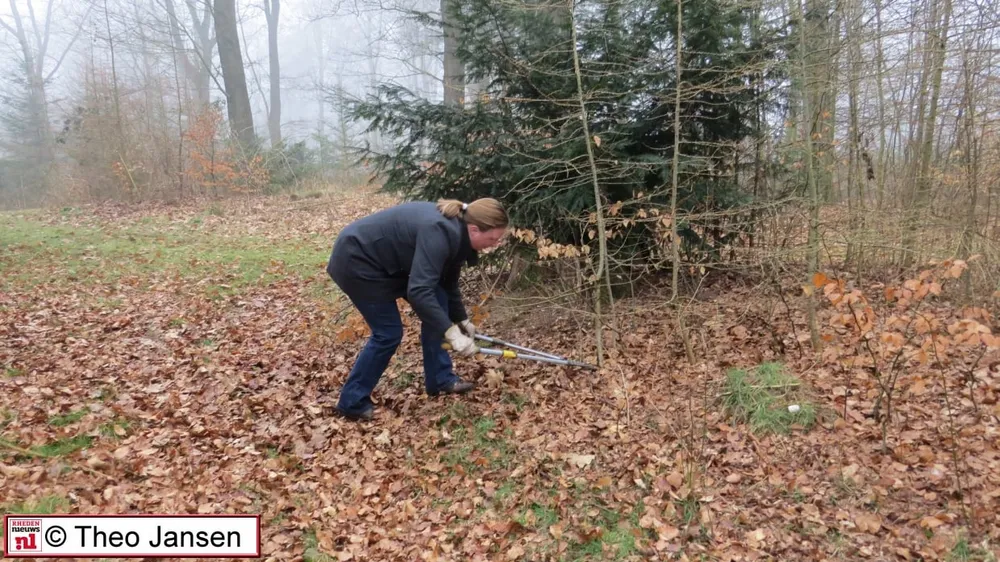 De werkzaamheden waren bij de leemkuil, het pad weer vrij te maken van de kleine beukenboomjes en andere struiken, zodat er weer vrij gelopen kon worden en gereden. Het Park word door tuinmannen en boswachters van Geldersch Landschap & Kasteelen onderhouden.
