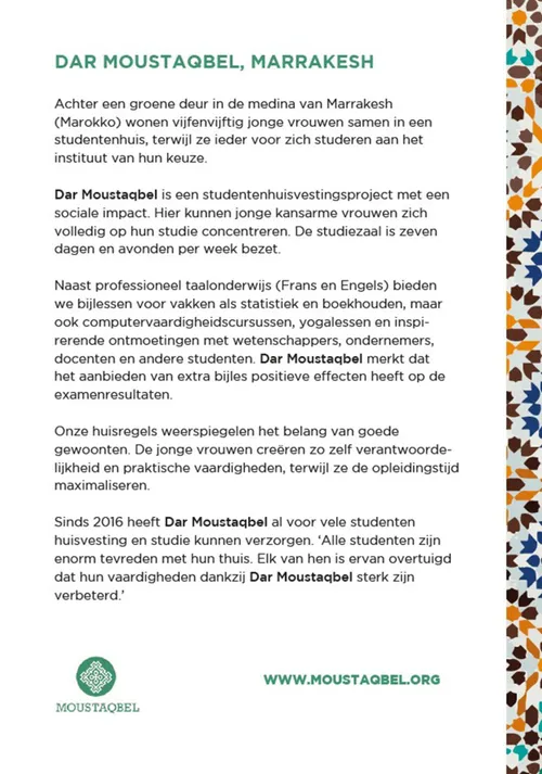 De locatie van dit evenement is de Culinaire Galerie, Bosweg 4 in Velp. Voor slechts € 12,50 per persoon wordt er een avond vol heerlijke wijnen en gezelligheid aangeboden. Bezoekers kunnen genieten van een wijnproeverij en hebben de mogelijkheid om hun favoriete wijn te bestellen. Of het nu is voor eigen consumptie of als cadeau, elke aankoop draagt direct bij aan Dar Moustaqbel. Bovendien biedt deze avond de kans om persoonlijk kennis te maken met de initiatiefnemers van het project.