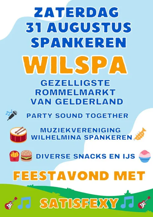 De WilSpa in Spankeren is een jaarlijks evenement georganiseerd door de Supportersvereniging Wilhelmina (SVW). Het vindt traditioneel plaats op de laatste zaterdag van augustus en is een geliefd lokaal evenement dat bekend staat om zijn rommelmarkt en gezellige sfeer. De markt is uitgegroeid tot een regionaal bekende gebeurtenis die veel bezoekers en verkopers trekt.